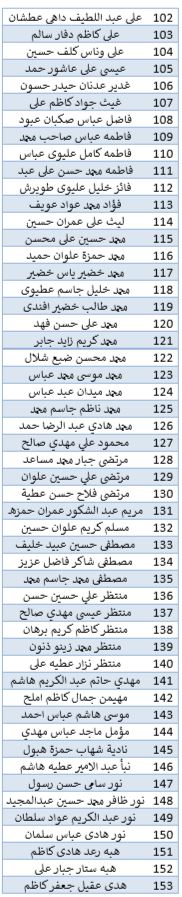 أسماء الطلبة المقبولين في كلية التمريض