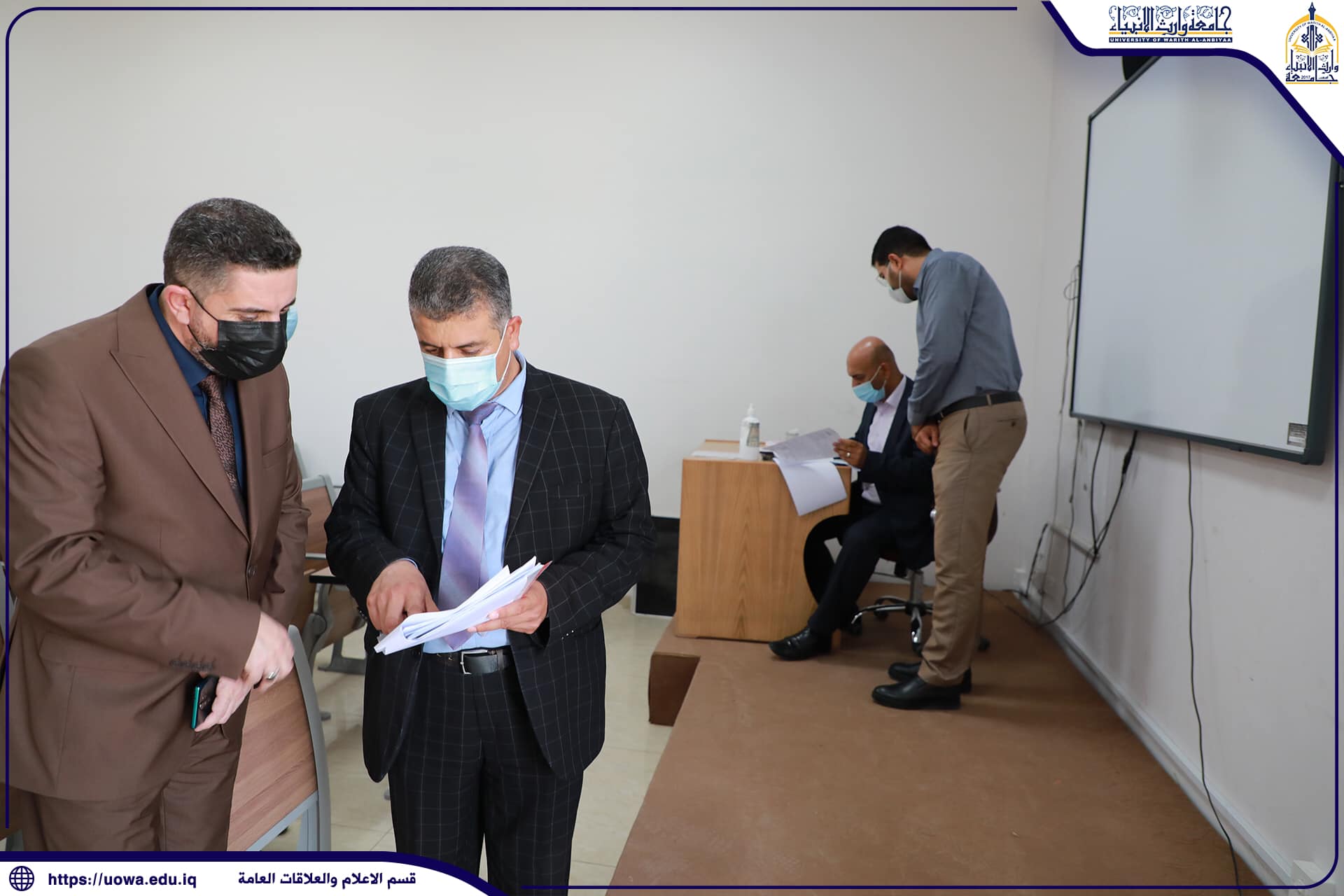 استقبلت جامعة وارث الانبياء (عليه السلام) اللجنة الوزارية المؤلفة من عدد من اساتذة جامعة كربلاء لمتابعة عمل اللجان الامتحانية وسير الامتحانات النهائية ، حيث كان في استقبال الوفد السيد المساعد العلميّ/رئيس الجامعة وكالة الاستاذ الدكتور عباس الدعمي والسادة عمداء كليتي الهندسة والتمريض،اذ اجرى الوفد جولة تفقدية في الجامعة تابع فيها سير عمل اللجان الامتحانية والاطلاع على السجلات الامتحانية للطلبة ، من جانبه اثنى الوفد على الاجراءات المتبعة من قبل الجامعة تحقيقاً للرصانة العلمية .