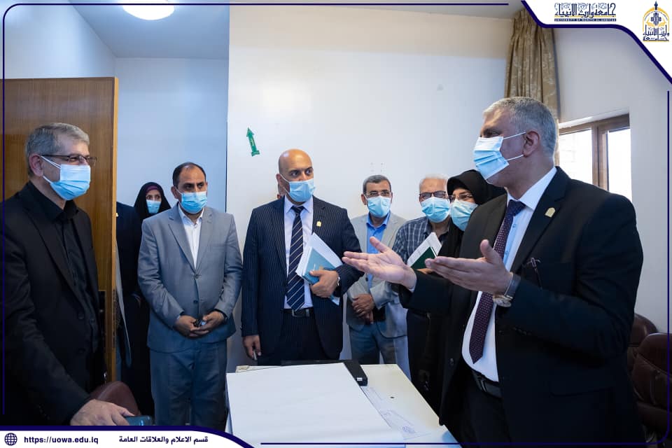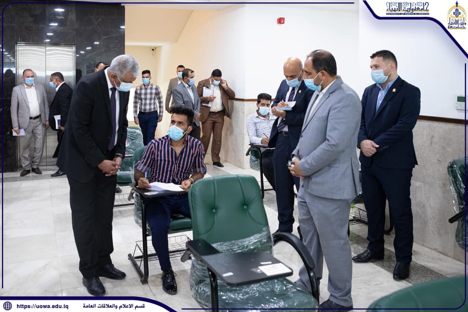 زارت اللجنة الوزارية الخاصة بمتابعة الامتحانات النهائية والمؤلفة من عدد من استاذة جامعة كربلاء برئاسة السيد رئيس جامعة كربلاء الاستاذ الدكتور باسم خليل السعيدي جامعة وارث الانبياء (عليه السلام) لمتابعة الامتحانات الحضورية في الجامعة ، إذ تجولت اللجنة برفقة السيد رئيس هيئة التعليم الجامعي في العتبة الحسينية المقدسة الدكتور افضل الشامي والسيد رئيس الجامعة/وكالة الاستاذ الدكتور عباس الدعمي في اروقة الجامعة وقاعاتها الامتحانية واطلعت على ما وفرته الجامعة من مستلزمات الامتحانات وحسب التعليمات الوزارية بالاضافة الى الاجرائات الوقائية والتباعد الاجتماعي ، كما زارت اللجنة غرف اللجان الامتحانية في كليات واقسام الجامعة واطلعت على آلية العمل فيها من خلال استمارة تقييم خاصة أعدتها الوزارة.