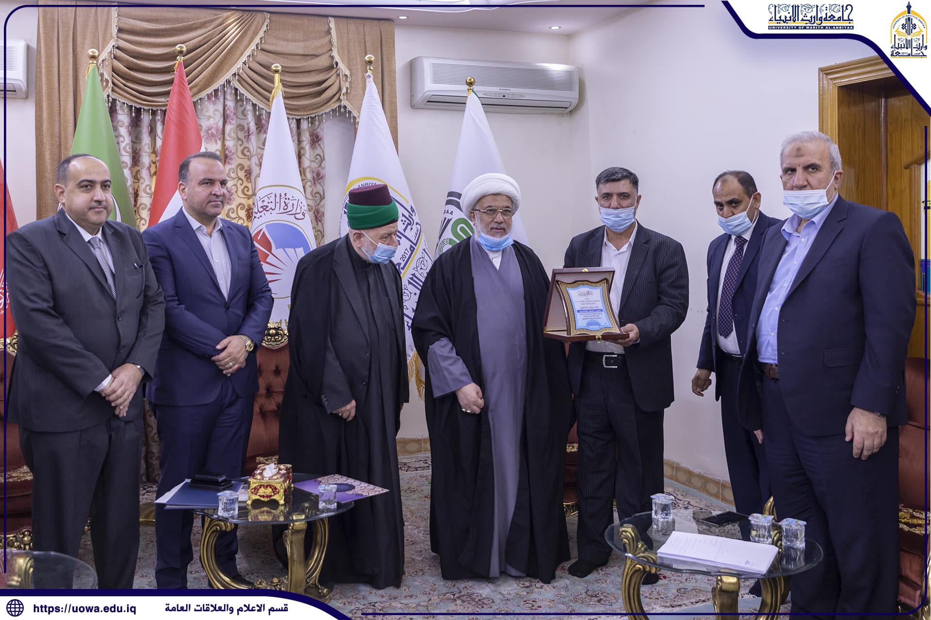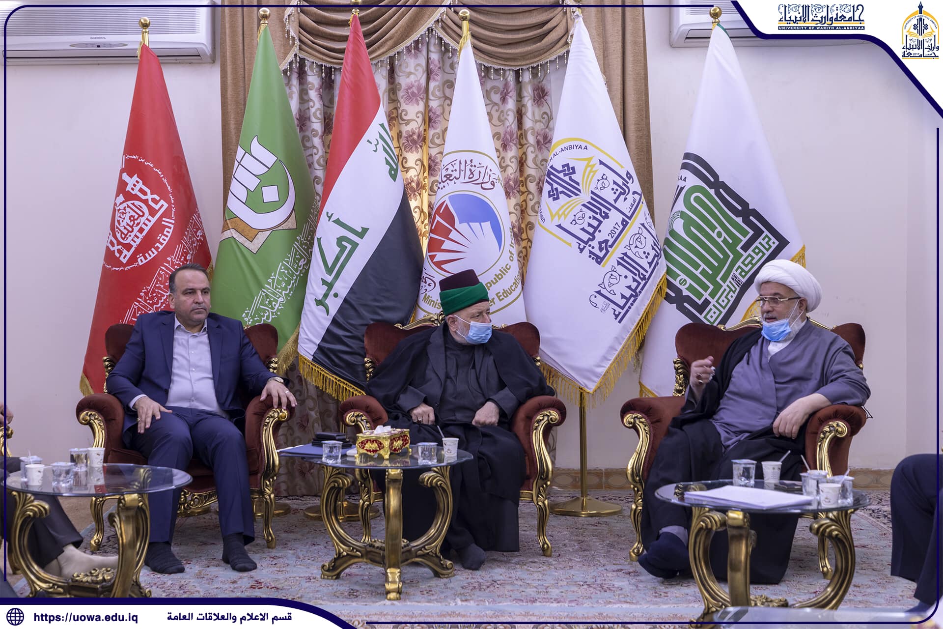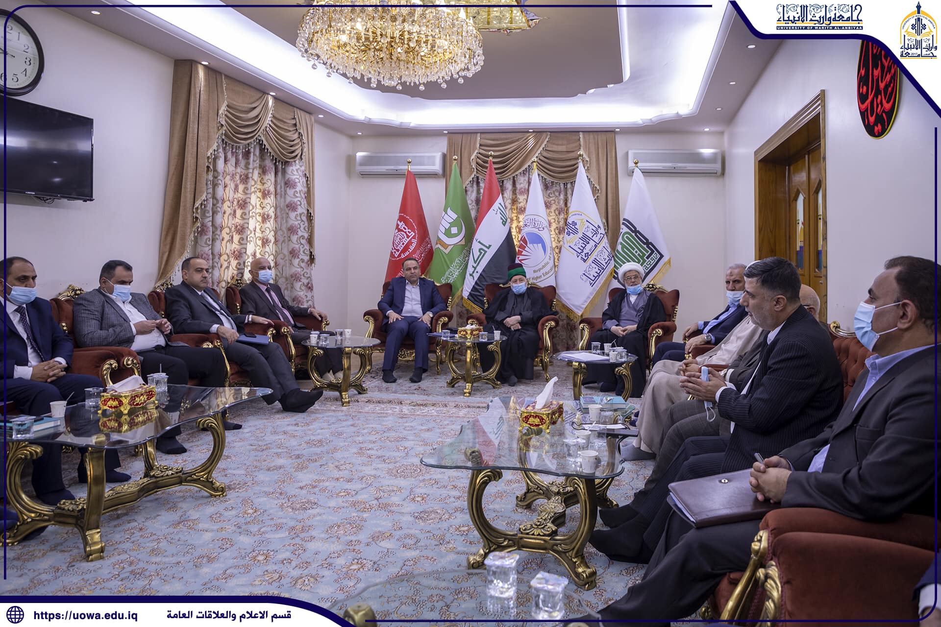 بحضور المتولي الشرعي للعتبة الحسينية المقدسة سماحة الشيخ عبد المهدي الكربلائي(دام عزه) والامين العام للعتبة الحسينية المقدسة سماحة السيد جعفر الموسوي (دام عزه) وجناب السيد حسن رشيد العبايجي نائب الامين العام والسيد افضل الشامي والسادة مساعدي رئيس الجامعة والسادة عمداء الكليات