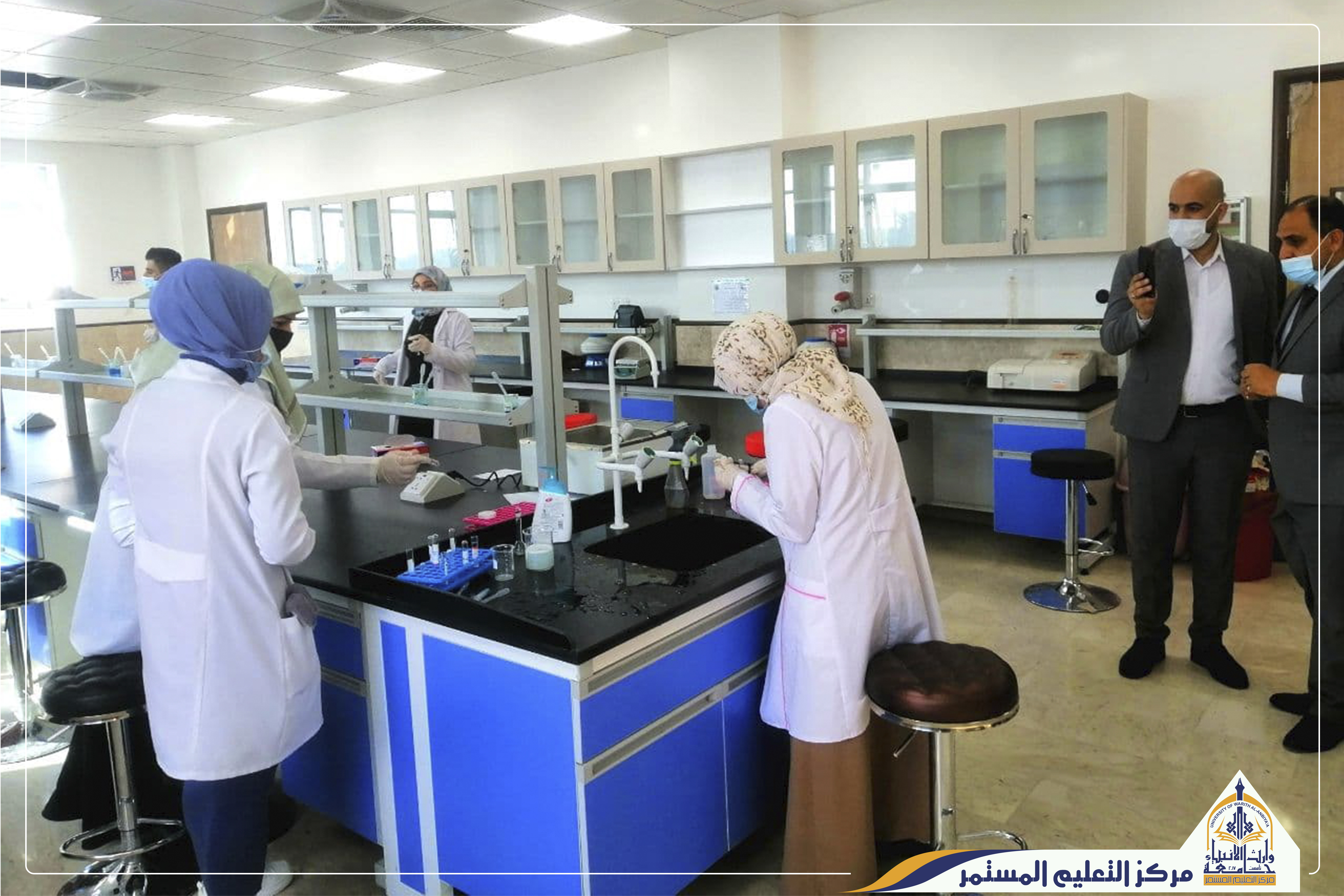 وضمن المتابعة الالكترونية مع الوزاره التي يؤديها مركز التعليم التعليم المستمر / شعبة التعليم الالكتروني ، تمت زيارة الجامعة من قبل الفريق الوزاري متمثلا بالدكتور(انور الجبوري) فقد زار الفريق الوزاري كلا من كلية التمريض وكلية الطب وكلية العلوم الاسلامية وقد اطلع على القاعات الدراسية والمختبرات في الكليات ضمن الزيارة اكد الفريق الوزاري على ضرورة ارتداء الكمامات والتباعد الاجتماعي كما قد تم سؤال التدريسيين في القاعات عن اعداد الحضور والغياب. وتاتي هذه الزيارة ضمن العديد من الزيارات التي يؤديها الفريق الوزاري للجامعة للاطلاع على سير عملية التعليم والاهتمام بالجانب الصحي . في الختام عبر الفريق الوزاري عن شكره للجامعة لما تقدمة للطلبة من اهتمام علمي وصحي.