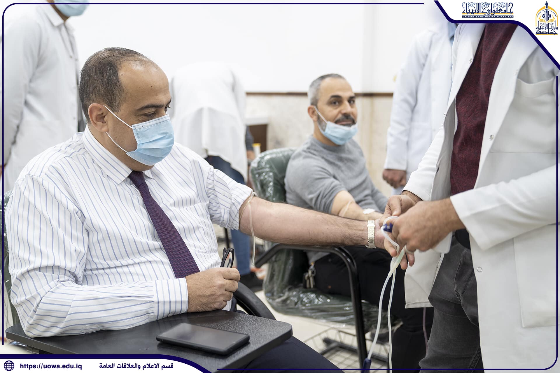 أقامت كلية التمريض في جامعة وارث الانبياء(عليه السلام) وبالتعاون مع دائرة صحة كربلاء المقدسة حملة للتبرع بالدم لمستشفى الامراض السرطانية وباقي المستشفيات في المحافظة، وجاءت هذه الحملة التي تقام للسنة الثالثة في الجامعة للمساهمة في مساندة المرضى بمستشفيات كربلاء المقدسة ممن هم بحاجة للتبرع بالدم، إذ اشترك في الحملة اساتذة ومنتسبي وطلبة الجامعة تقدمهم السيد رئيس الجامعة الأستاذ الدكتور ابراهيم سعيد الحياوي، بالاضافة إلى أن الحملة كانت بمثابة دروس عملية لطلبة كلية التمريض لأهمية تخصصهم من الجانب الانساني.