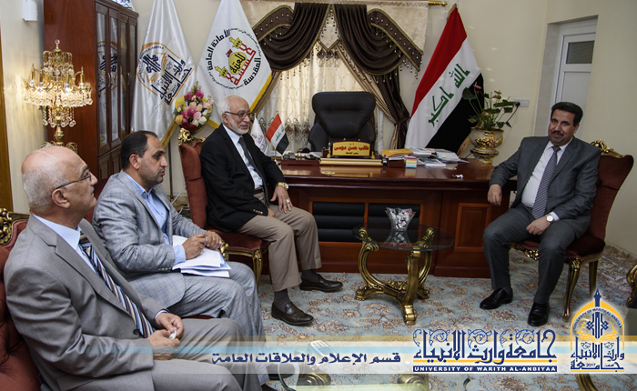 التقى رئيس جامعة وارث الانبياء الاستاذ الدكتور طالب حسن موسى بوفد جامعة العميد برئاسة الاستاذ الدكتور جاسم المرزوقي رئيس الجامعة من اجل فتح افاق التعاون بين الجامعتين للنهوض بالواقع التعليمي نحو الافضل ، وقال المرزوقي اطلعنا ميدانيا على الجامعة ورأينا الرصانة العلمية التي تتمتع بها من كافة النواحي والبنى التحتية وصرح علمي ممتاز ونسعى للتكامل مع جامعتنا واننا في جامعة العميد كلجسد الواحد مع جامعة الوارث