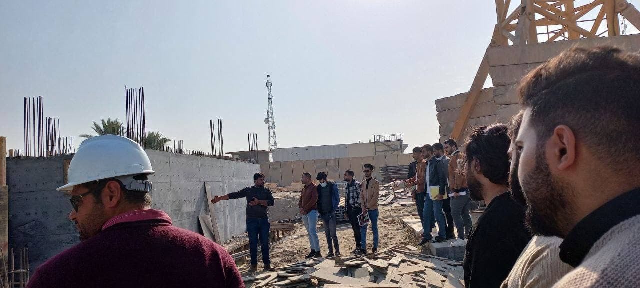 وقد اطلع الطلبة على تفاصيل العمل والتحديات الإنشائية للمشروع وتحدث نخبة من تدريسي القسم مع الطلبة عن تفاصيل العمل بما يتناسب مع مرحلة التنفيذ الموجودة.