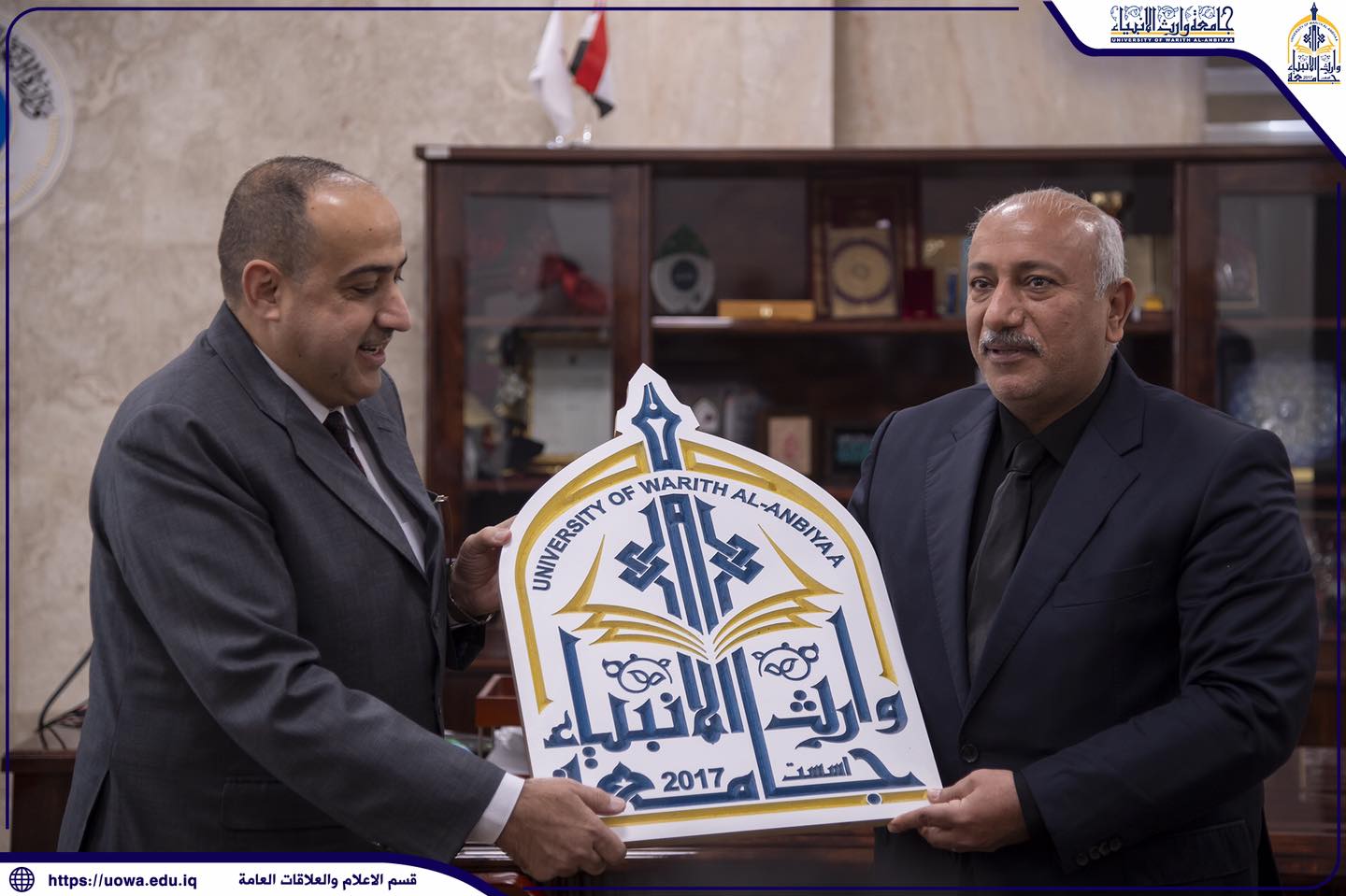 استقبلت رئاسة جامعة وارث الأنبياء(عليه السلام) متمثلةً بالسيد رئيس الجامعة الأستاذ الدكتور إبراهيم الحياوي ،السيد محافظ كربلاء المقدسة المهندس نصيف جاسم الخطابي.