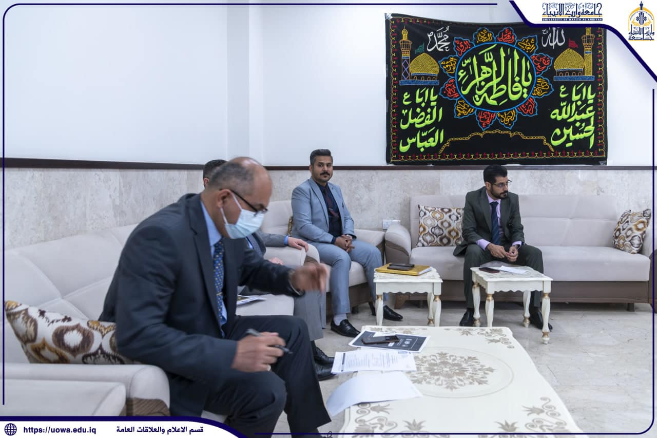 عقد السيد مساعد رئيس الجامعة للشؤون العلمية الاستاذ الدكتور عباس كاظم الدعمي اجتماعاً موسعاً للوقوف على الاستعدادات الجارية (لمسابقة وارث الانبياء للتميز البحثي الاولى)، وذلك بحضور السيد عميد كلية التمريض والسادة رؤساء أقسام الشؤون العلمية، والاعلام، ومركز الحاسبة الالكترونية.