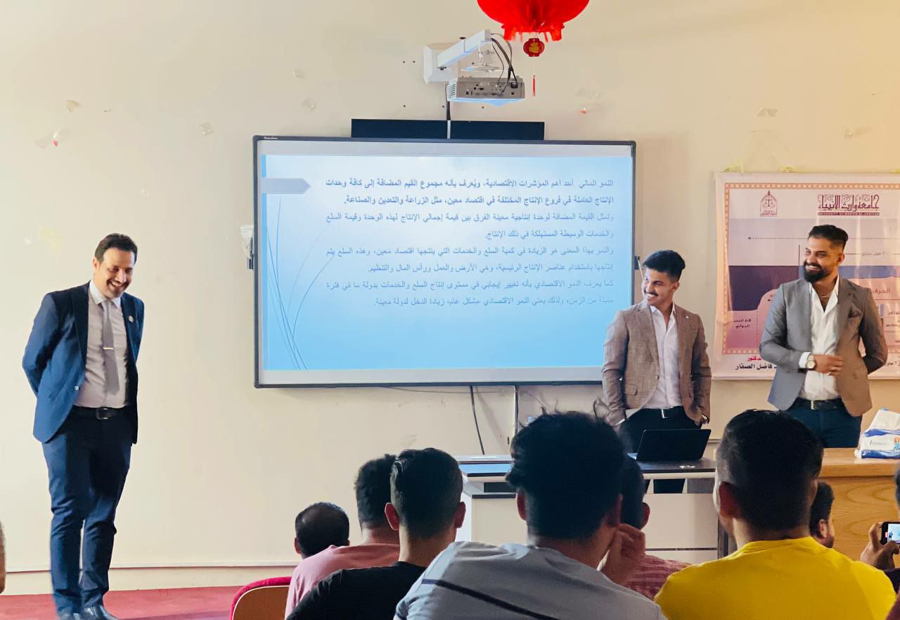 ضمن النشاطات الطلابية العلمية لقسم ادارة الاعمال في كلية الإدارة والاقتصاد بجامعة وارث الانبياء(عليه السلام)، قدم عدد من طلبة المرحلة الاولى ندوة علمية بعنوان (النمو المالي وأثرة في الاقتصاد العام).