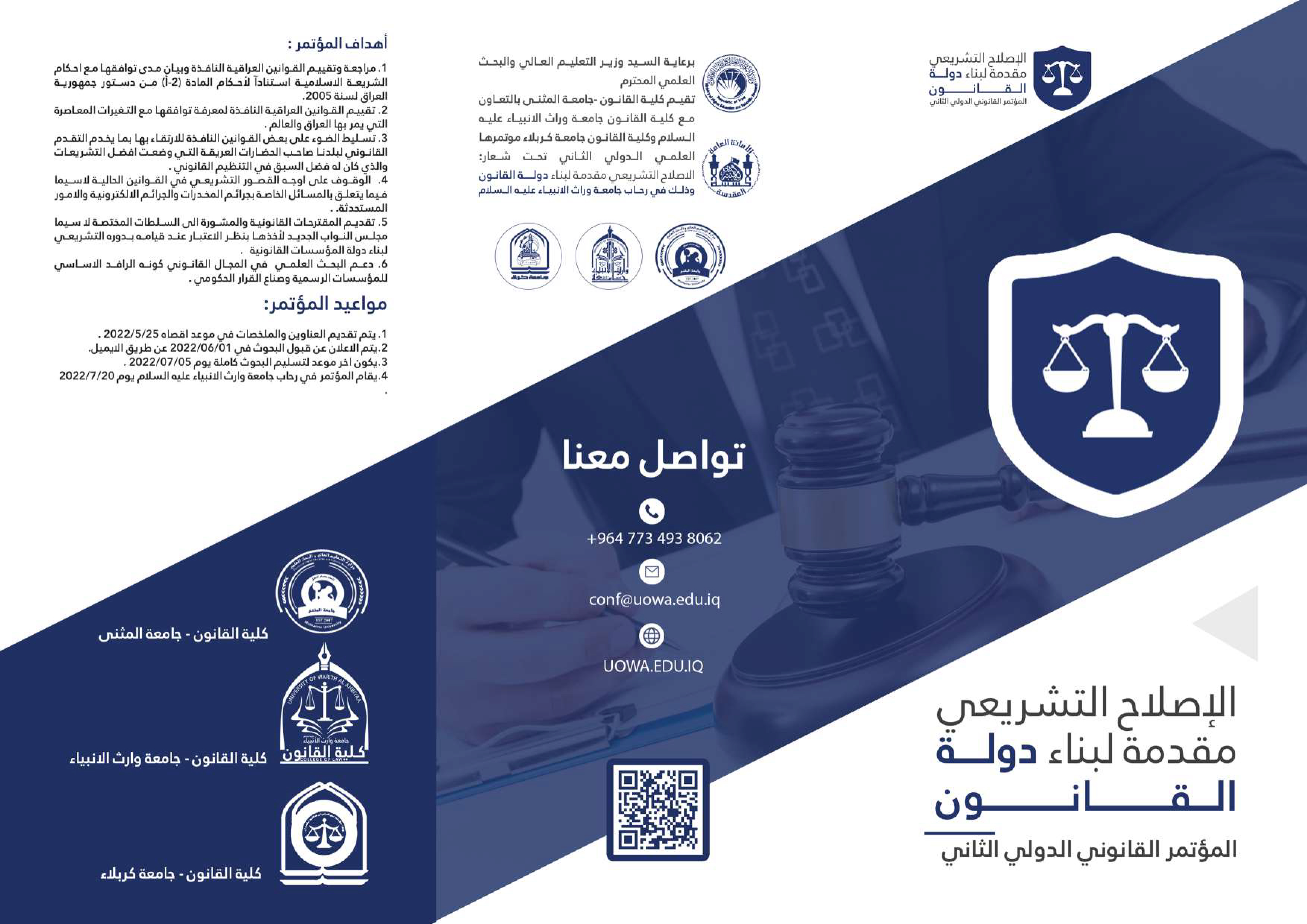 برعاية السيد وزير التعليم العالي والبحث العلمي تقيم كلية القانون- جامعة المثنى وبالتعاون مع كلية القانون في جامعة وارث الأنبياء (عليه السلام) وكلية القانون- جامعة كربلاء
