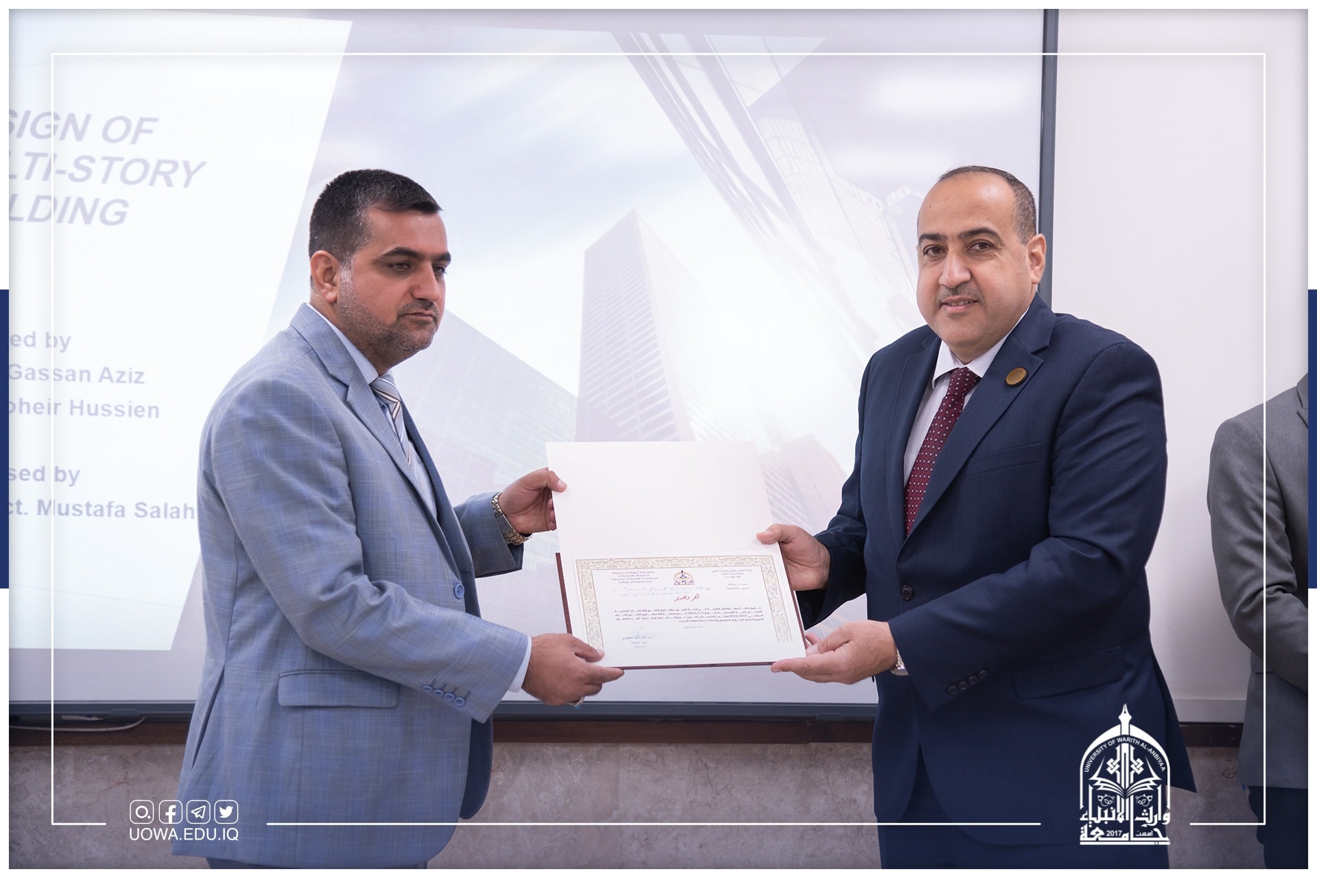 يذكر أن رئاسة الجامعة رصدت مكافأة مالية لبحوث ومشاريع التخرج المتميزة لطلبة المرحلة الرابعة للعام الدراسي ٢٠٢١ - ٢٠٢٢، تشجيعاً للطلبة ولحثهم على الاجتهاد والابتكار والخروج عن النمطية في كتابة وتنفيذ مشاريع التخرج.
