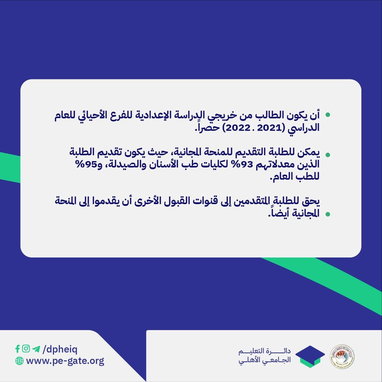 أعزاؤنا الطلبة الراغبين بالتقديم على المنحة المجانية لكلية الطب في جامعة وارث الانبياء(عليه السلام) إليكم المعلومات الآتية: