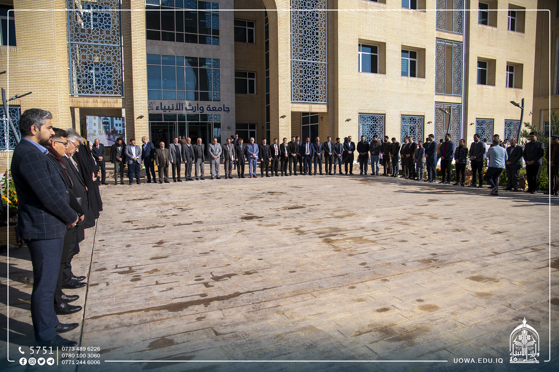 رئاسة جامعة وارث الانبياء(عليه السلام) تنظم وقفة حداد لقراءة سورة الفاتحة بمناسبة الذكرى السنوية الثالثة لاستشهاد قادة معارك النصر على التنظيمات الارهابية.