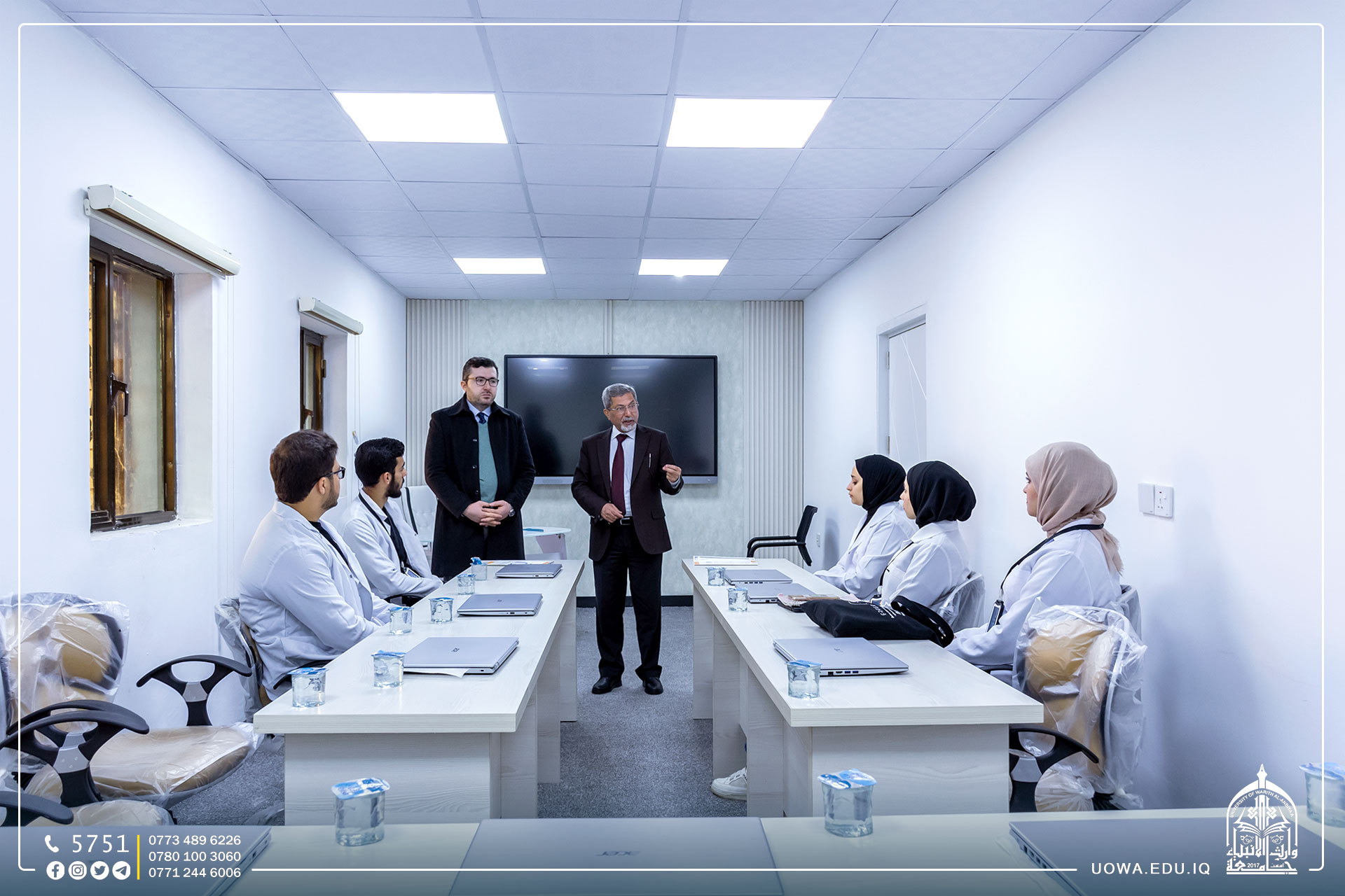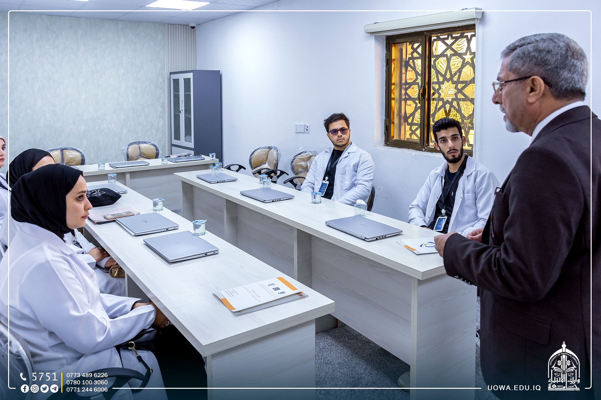 إذ قدم الدكتور صبيح المشهداني شرحاً تعريفياً للمركز وأهميته في التدريب العملي لطلبة الطب.