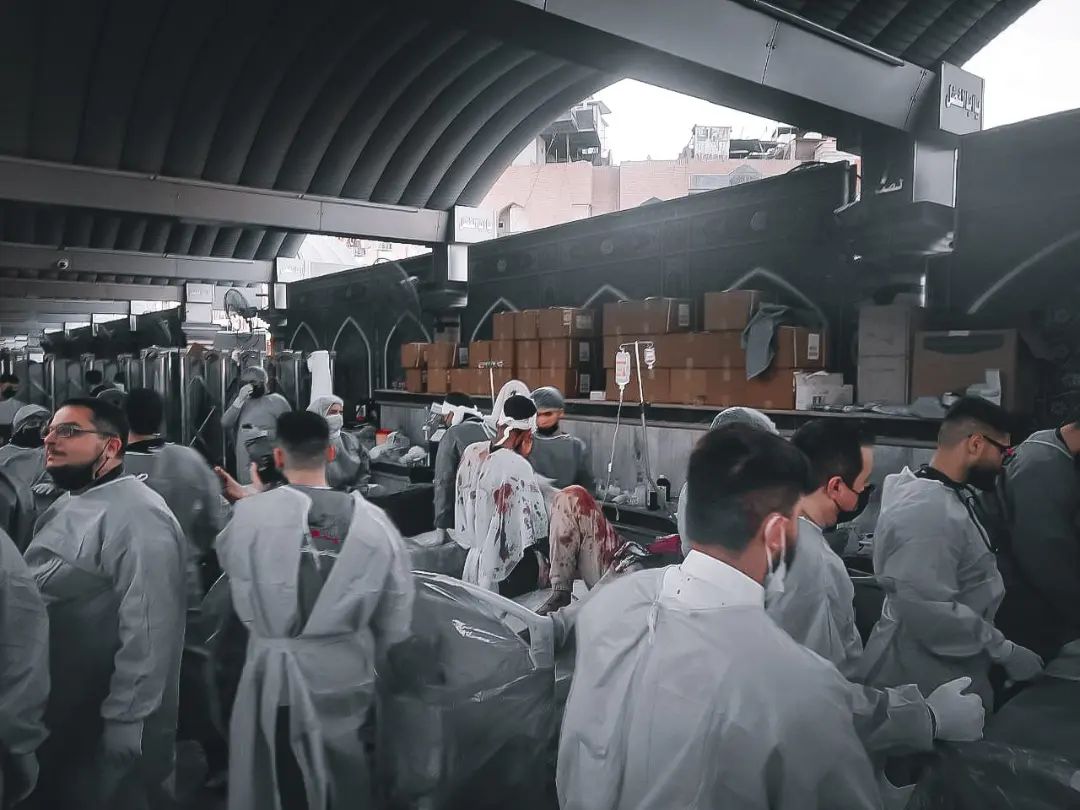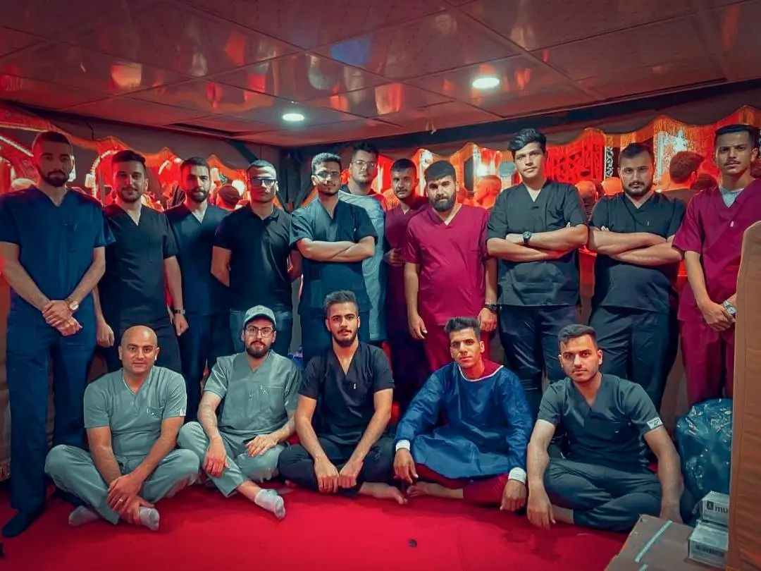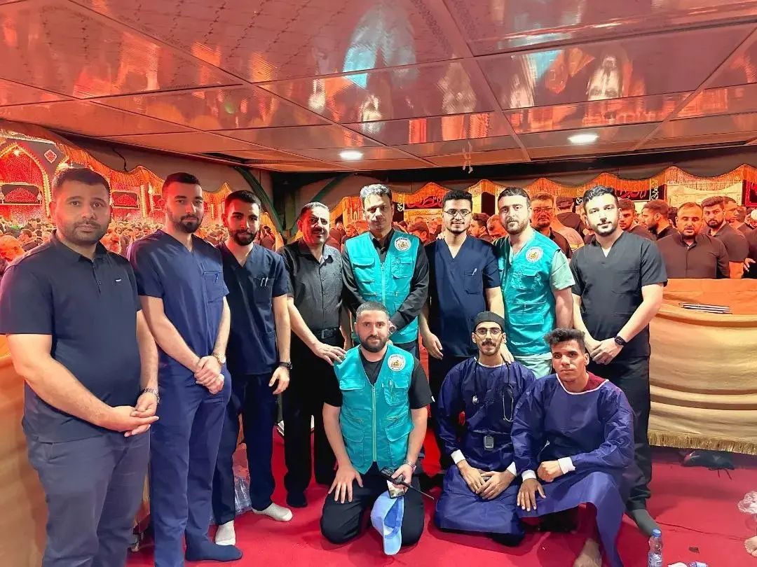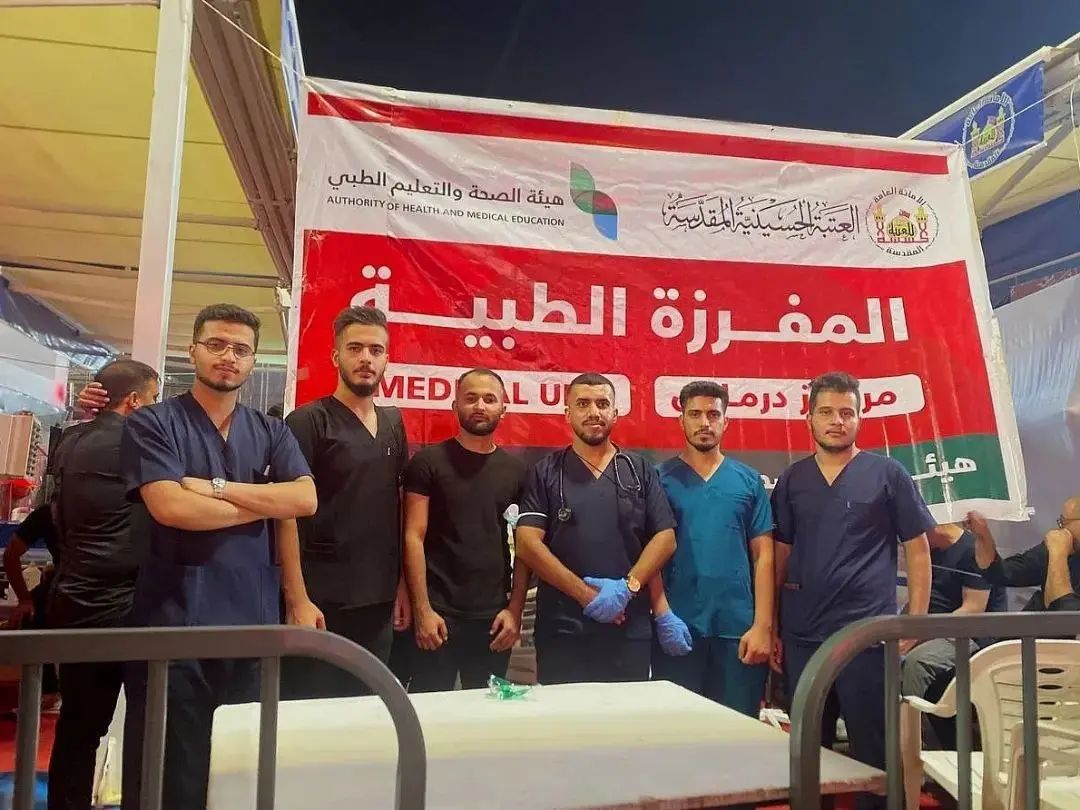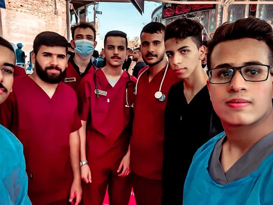 مشاركة طلبة كلية الطب والتمريض يقدمون خدماتهم لزائري الامام الحسين (عليه السلام)
