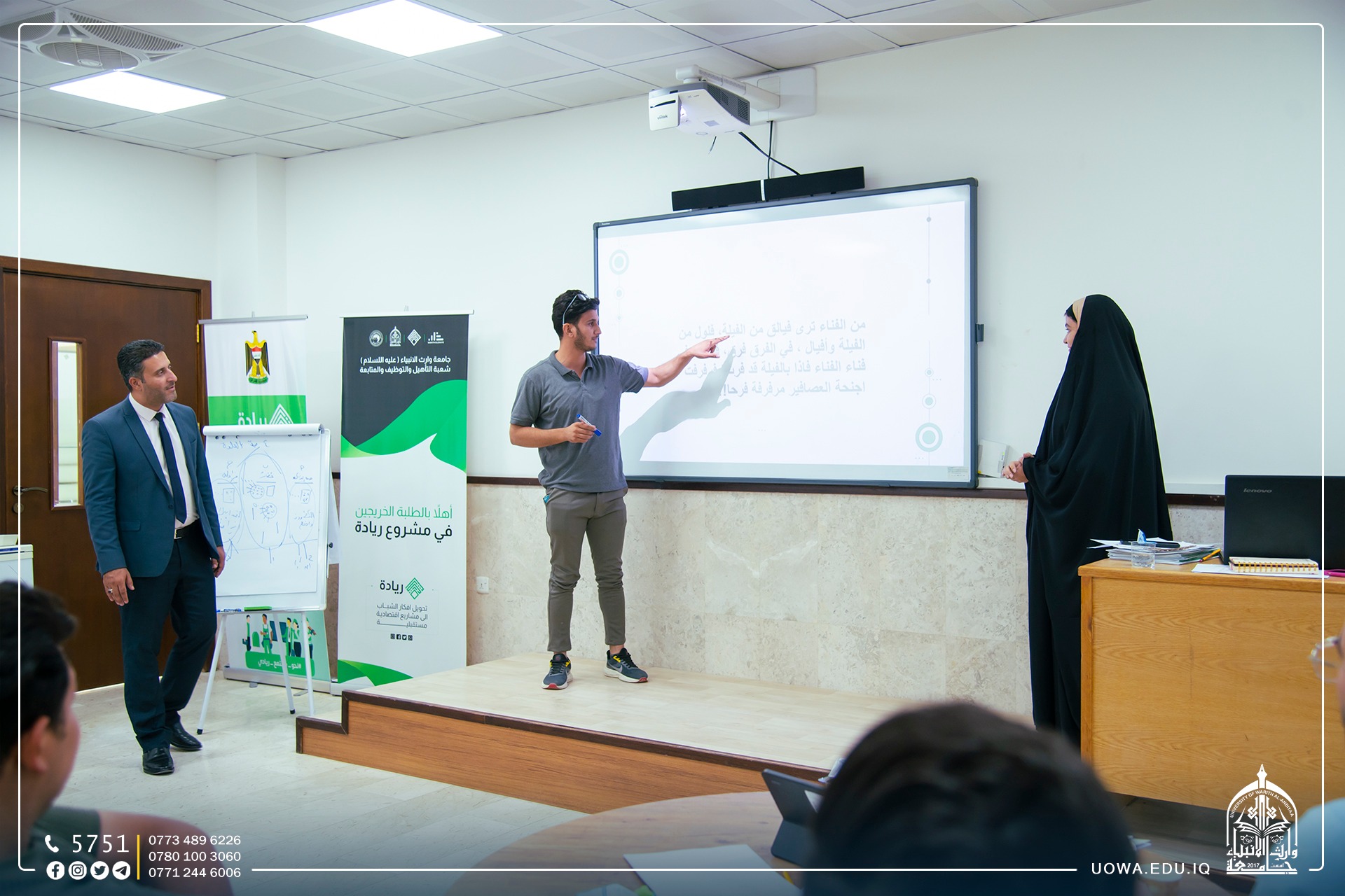 استمرار الدورات التدريبية (الدورة الخامسة) التي تقيمها جامعة وارث الانبياء(عليه السلام)/ شعبة التأهيل والتوظيف ضمن مبادرة"ريادة" الحكومية التي تهدف إلى دعم مشاريع الطلاب والخريجين، بمشاركة المدربين صفاء السيلاوي وفاطمة الكاصد، و تنظيم هذه الدورة بشكل دائم على مدار أسبوعين في الشهر.