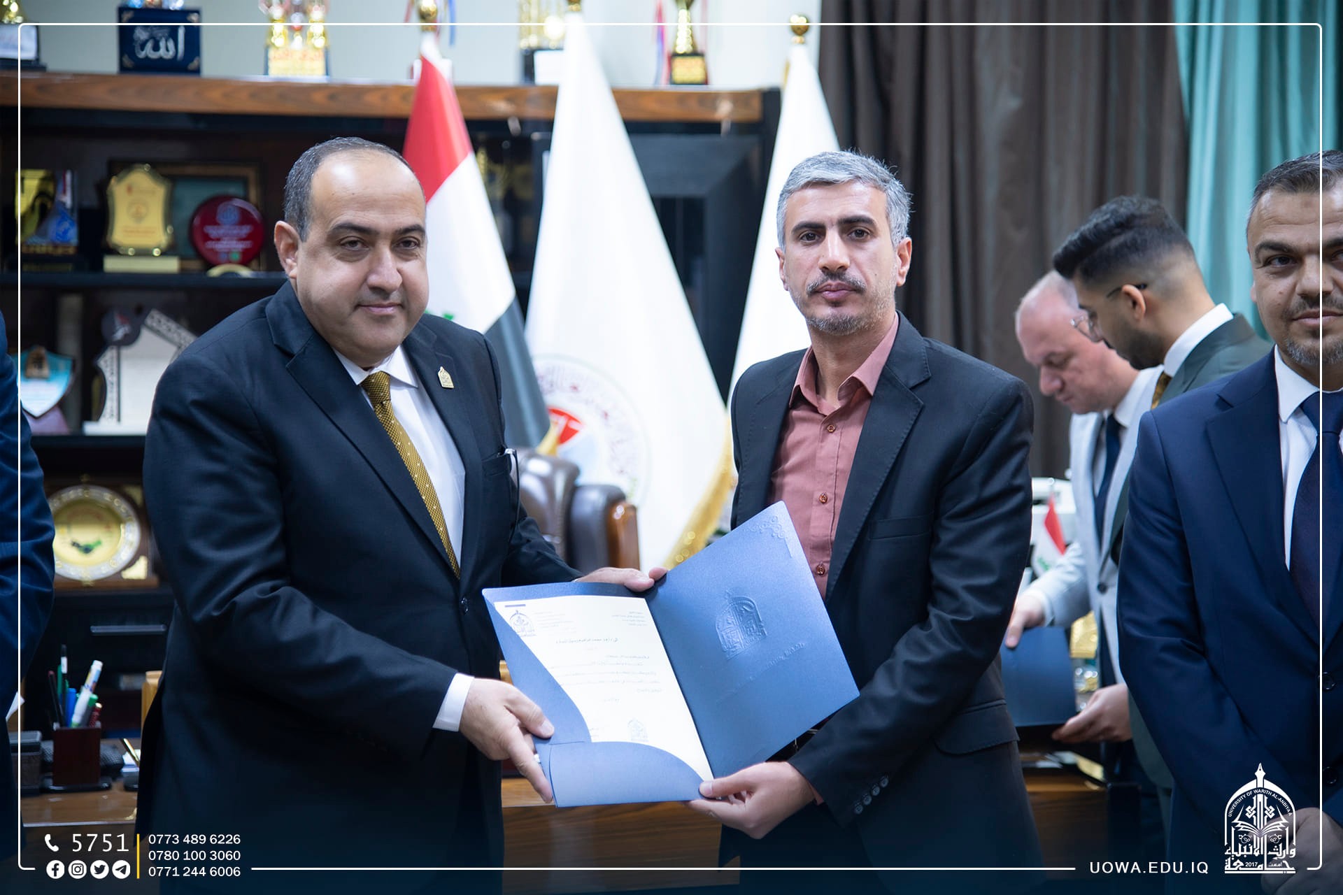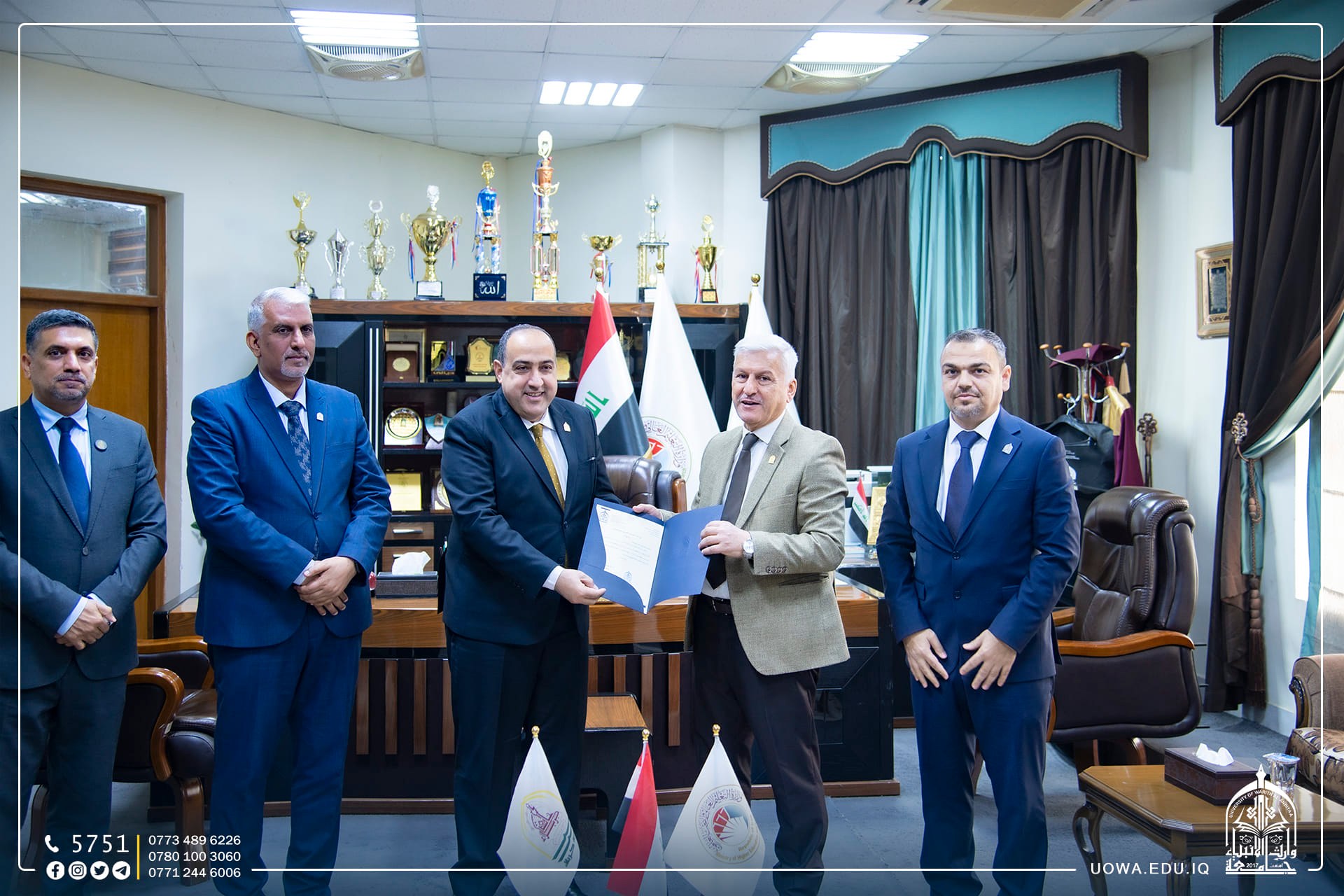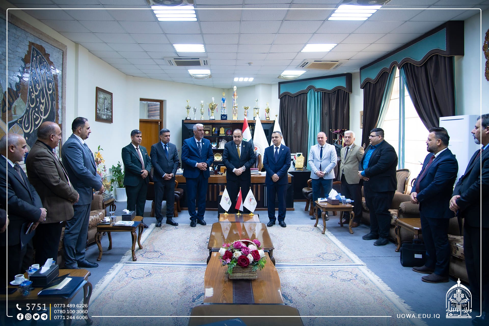 حرصا على تعزيز الاواصر العلمية والاكاديمية مع المؤسسات التعليمة ، زار رئيس الجامعة الاستاذ الدكتور ابراهيم الحياوي، والمساعد العلمي الاستاذ الدكتور واقد الموسوي،والوفد المرافق لهما ، رئاسة جامعة كربلاء لتقديم التهاني والتبريكات لتجديد الثقة لمساعدي رئيس جامعة كربلاء الإداري والعلمي، الاستاذ الدكتور اكرم الياسري، والاستاذ الدكتور نجم عبدالحسين، بالإضافة الى تهنئة عمداء الكليات الذين تسنموا مناصبهم حديثاً.