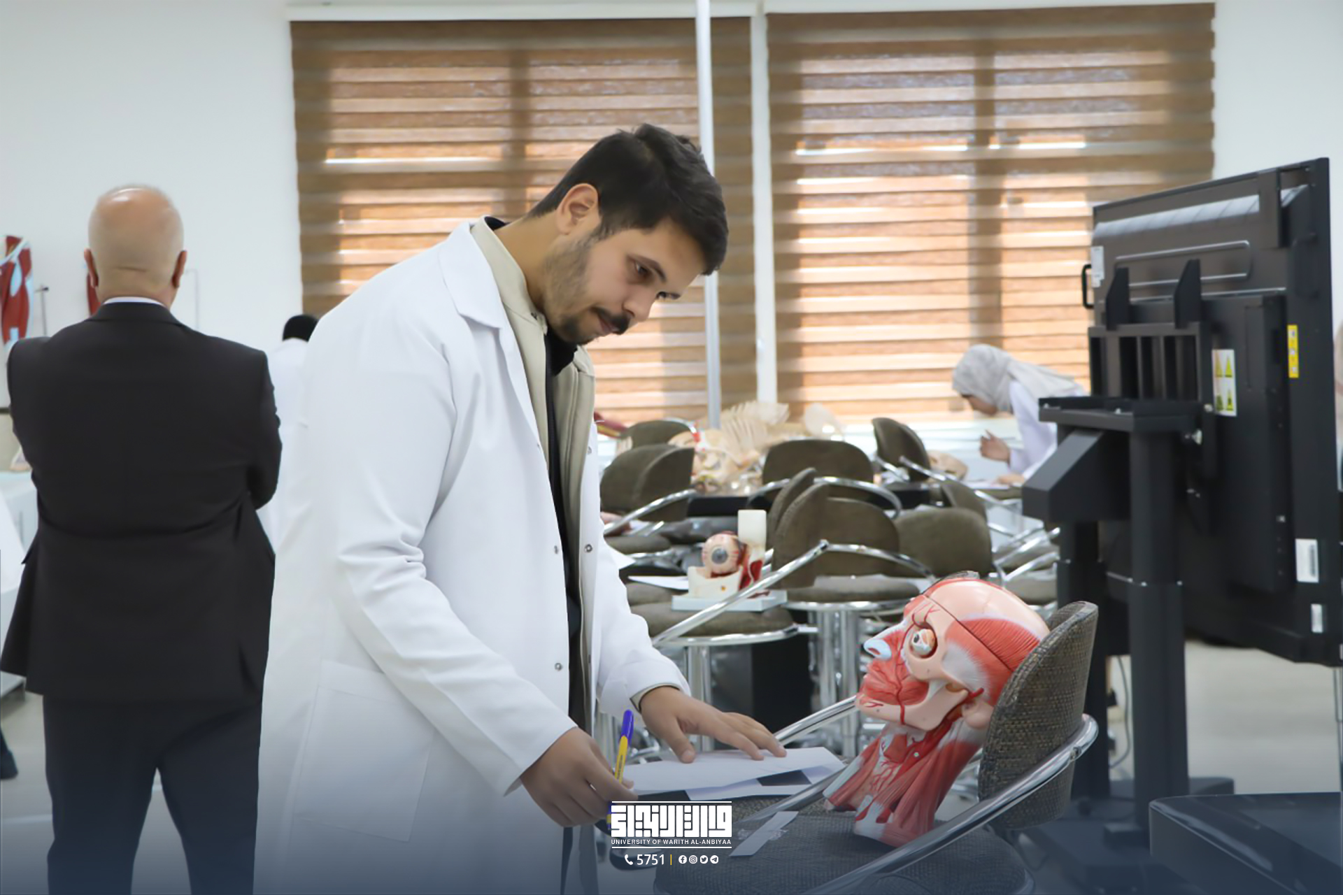 بإشراف الدكتور علي عبد سعدون، عميد كلية الطب، أدى طلاب المرحلة الثانية في جامعة وارث الأنبياء (عليه السلام) امتحانات منتصف العام الدراسي لمادة التشريح العملي. وقد قدمت عمادة الكلية جميع المستلزمات العلمية واللوجستية لضمان سلامة سير الامتحانات.