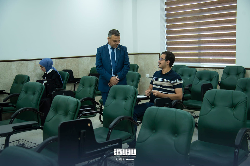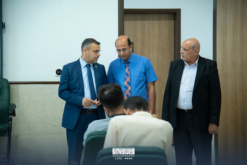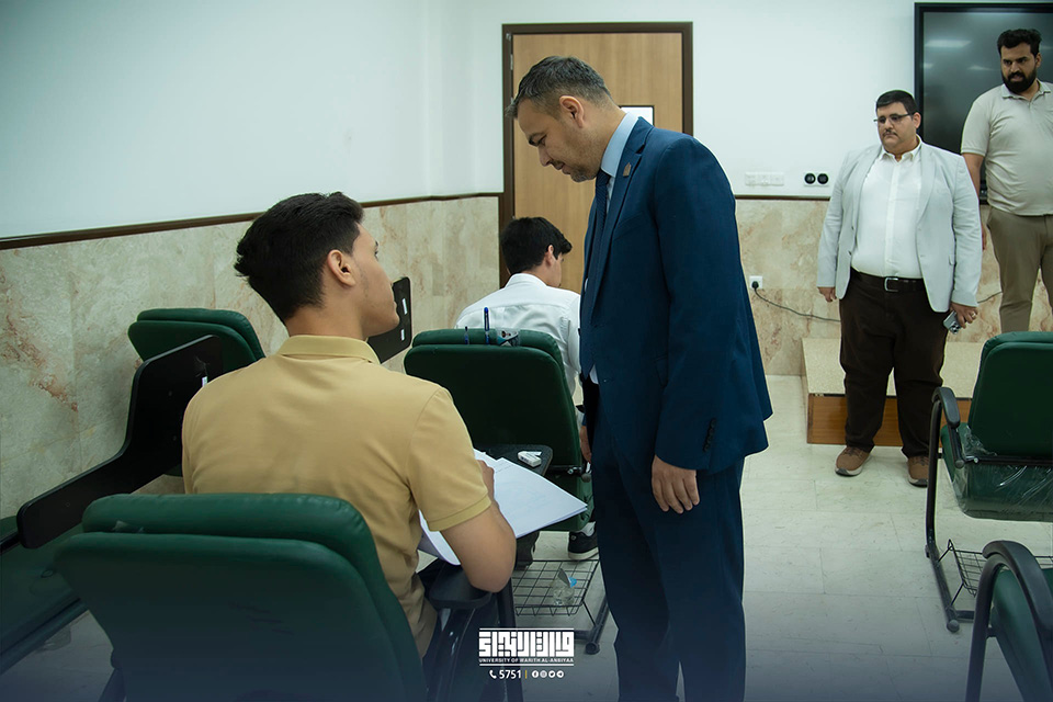 وسط اجواء طيبة وتنسيق عالي وبحضور السيد مساعد رئيس الجامعة للشؤون العلمية الاستاذ الدكتور واقد الموسوي المحترم واللجنة الوزارية الموقرة تستمر الامتحانات النهائية الوزارية لطلبة كليات واقسام جامعة وارث الانبياء(عليه السلام) وبانسيابية ممتازة.