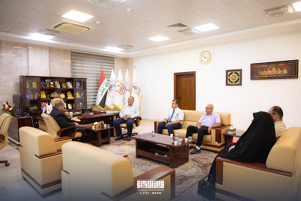 استقبل الأستاذ الدكتور إبراهيم سعيد الحياوي، رئيس جامعة وارث الأنبياء (عليه السلام)، وفدًا من عمادة كلية الطب بجامعة كربلاء برئاسة الأستاذ الدكتور رياض ضيهود الزبيدي، عميد الكلية. تهدف الزيارة إلى تعزيز التعاون العلمي بين كليتي الطب في الجامعتين، وتوطيد العلاقات المشتركة في مجالات تطوير المناهج وطرائق التدريس وتدريب الطلبة.