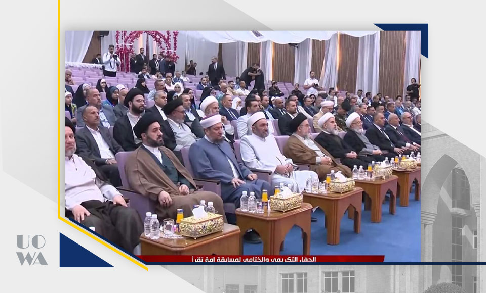 شاركت رئاسة جامعة وارث الأنبياء (عليه السلام) في الحفل الختامي لمسابقة (أمة تقرأ) التي نظمتها العتبة الحسينية المقدسة بالتعاون مع وزارة التربية العراقية. حضر الحفل ممثل المرجعية الدينية العليا والمتولي الشرعي للعتبة الحسينية سماحة الشيخ عبد المهدي الكربلائي (دام عزه) والأمين العام للعتبة الحاج حسن رشيد العبايجي (دام توفيقه).