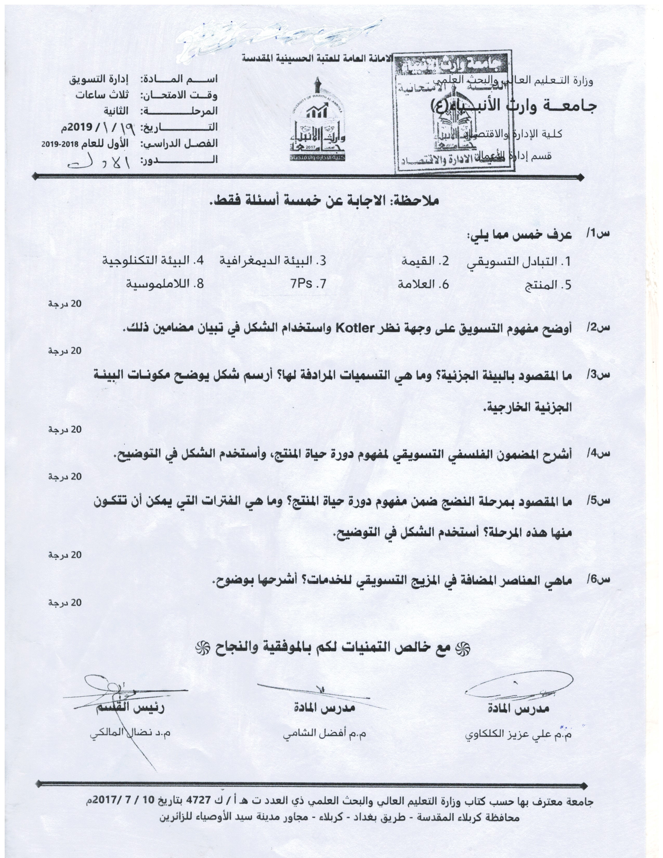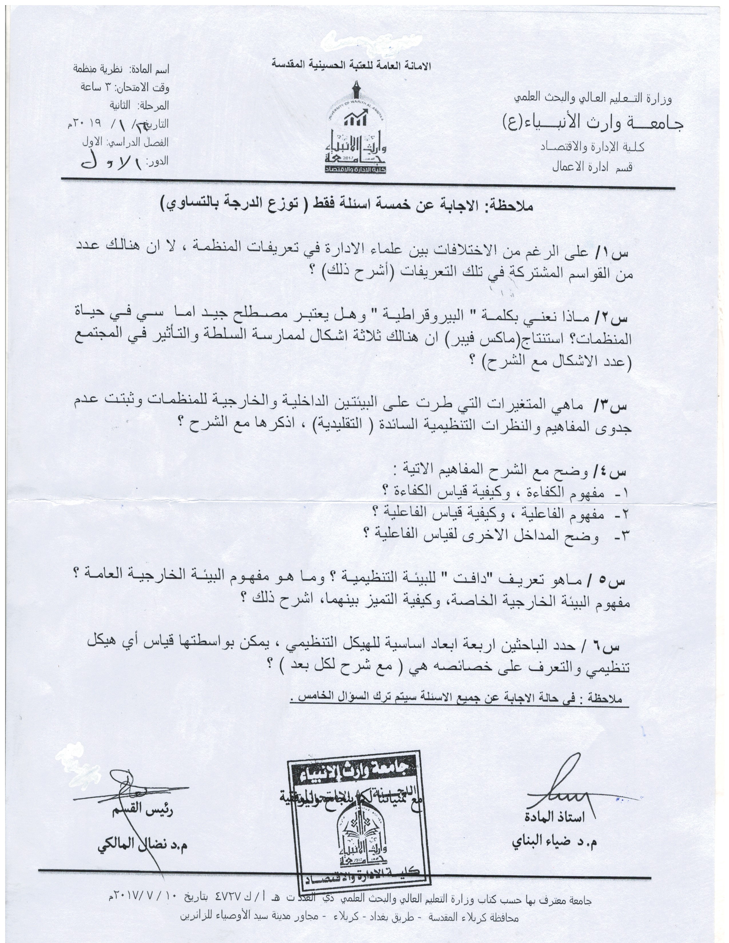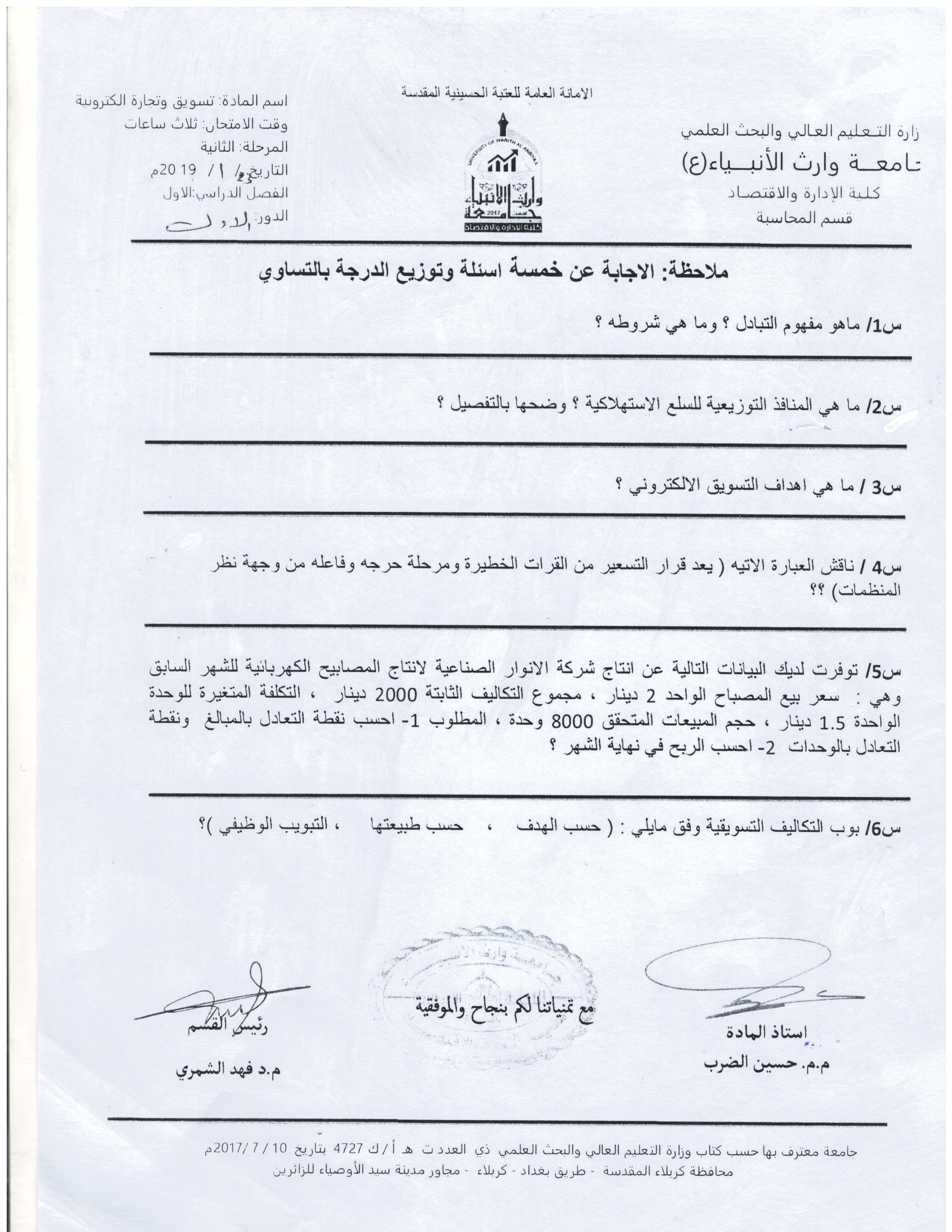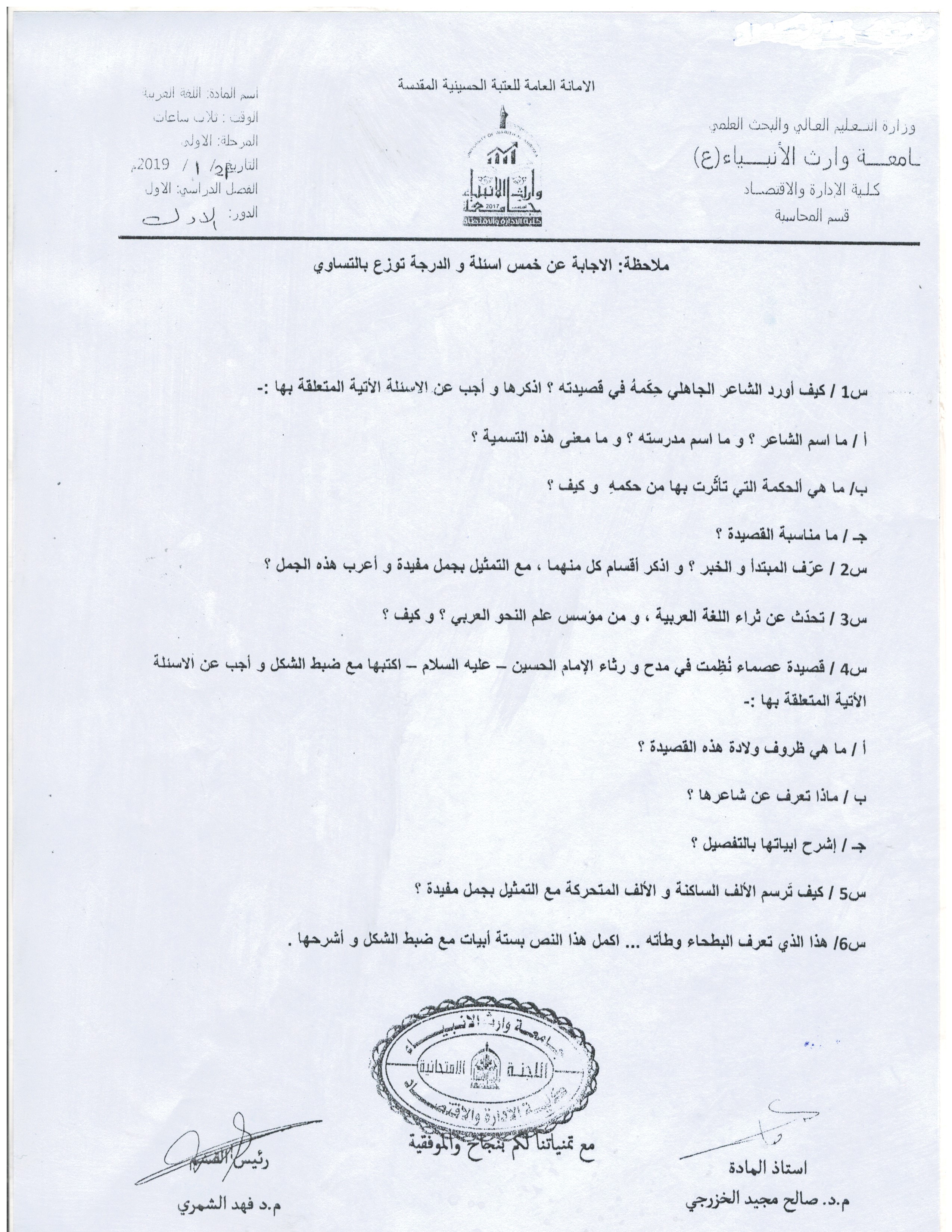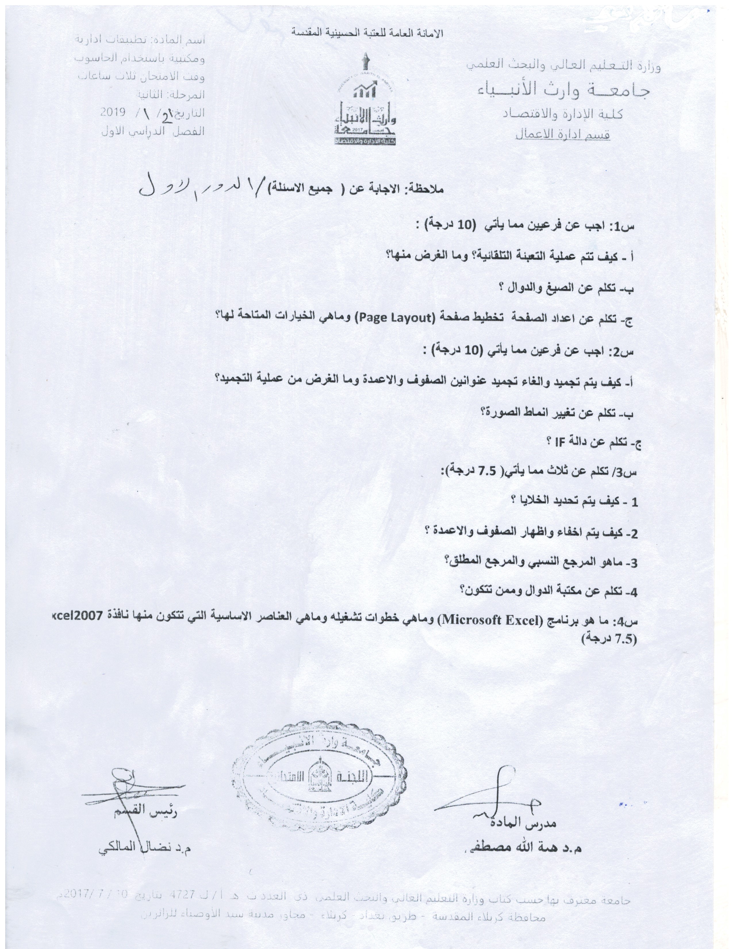 بعض اسئلة الكورس الاول للمرحلة الاولى والثانية ولقسمي المحاسبة وادارة الاعمال