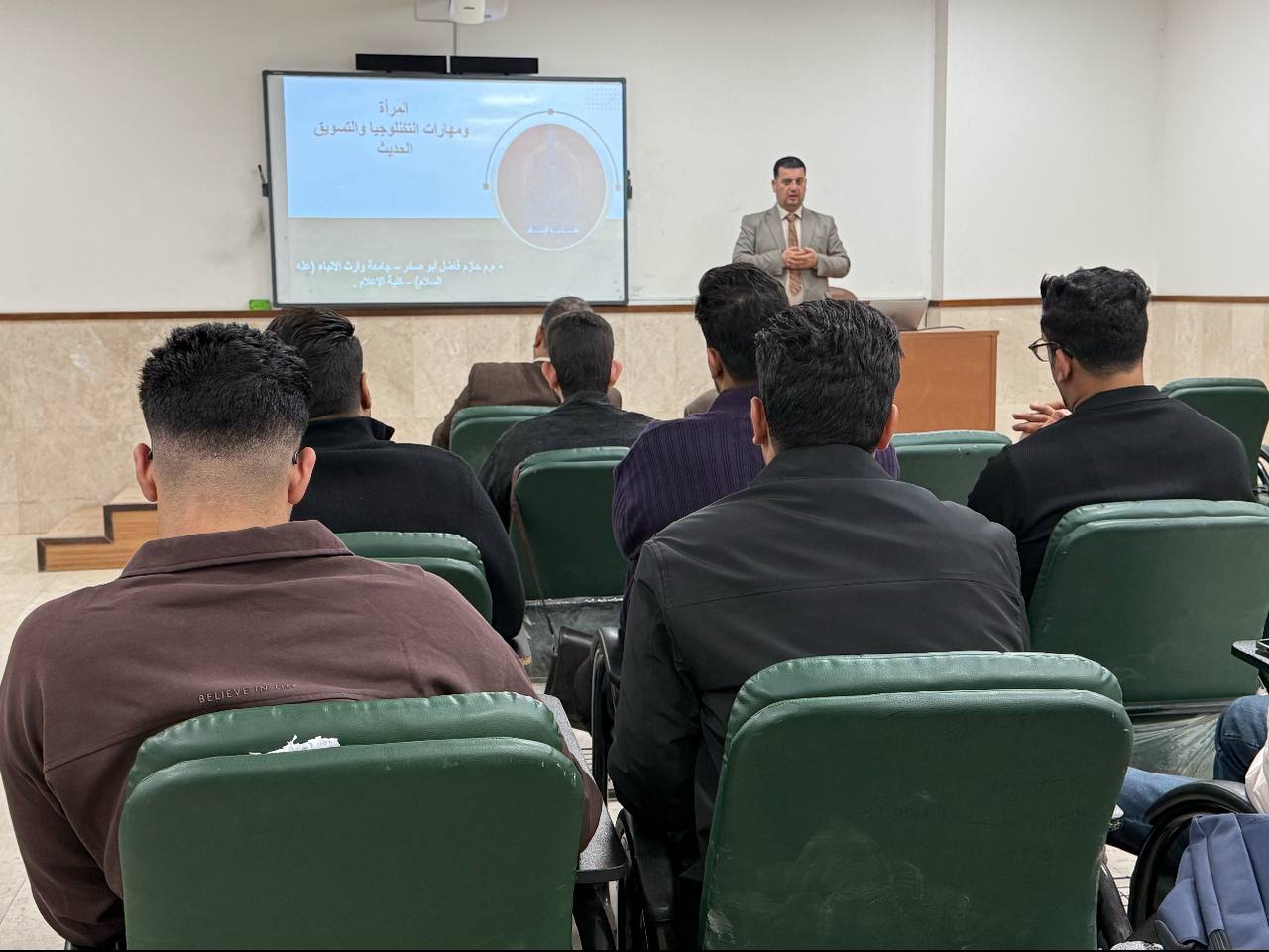 برعاية السيد رئيس جامعة وارث الأنبياء أ.د ابراهيم سعيد الحياوي وباشرف السيد عميد كلية الاعلام (أ.م.د محمد جمال الطيف) أقامت شعبة شؤون المرأة في جامعة وارث الأنبياء(عليه السلام) وبالتعاون مع كلية الإعلام ندوه بعنوان (المرأة ومهارات التكنلوجيا والتسويق الحديث ) قدمها التدريسي في قسم الإعلام الرقمي ( م.م. حازم فاضل ابو صخر ) يوم الاحد الموافق (2025/11/23) بمقر الجامعة بحضور اساتذة وطلبة كلية الاعلام.