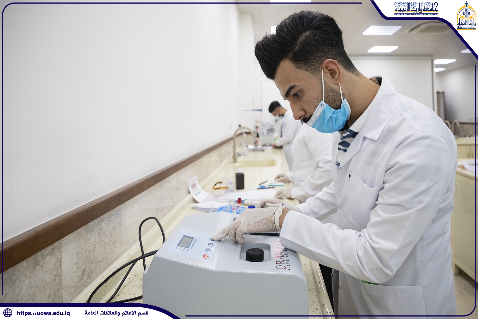 تابع السيد عميد كلية التمريض الاستاذ المساعد الدكتور مرتضى غانم الجبوري سير الامتحانات النهائية العملية الحضورية لطلبة كلية التمريض