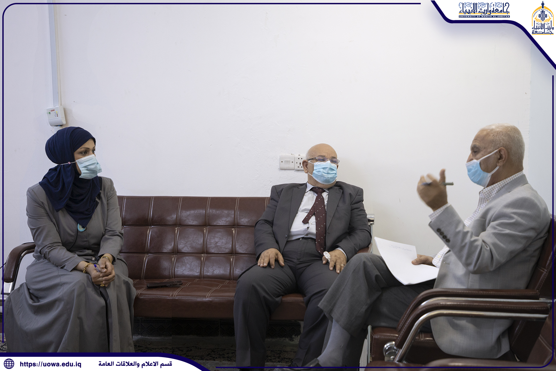 اجتمع السيد عميد كليه الادارة والاقتصاد جامعة وارث الأنبياء أ.د عواد كاظم الخالدي في يوم الإربعاء المصادف ٢٦/٥/٢٠٢١ بالكادر التدريسي للكلية وبحضور رئيس قسم الادارة م.د فهد الشمري ؛ ورئيس قسم المحاسبة م.د هبة الله مصطفى .