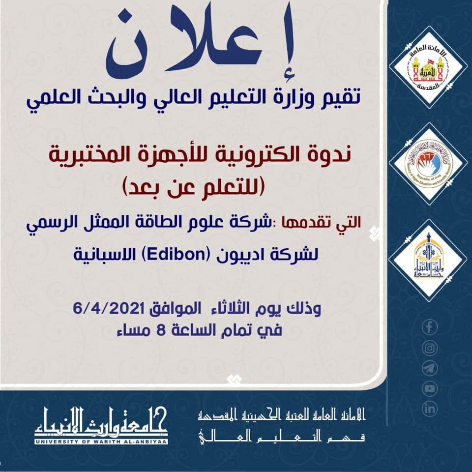 جانب من القاعات الامتحانية لقسم التكييف والتبريد في جامعه وارث الأنبياء ليوم الثلاثاء المصادف ٦ / ٤ / ٢٠٢١ والذي يعكس صوره مثاليه لتطبيق التباعد الاجتماعي والالتزام بارتداء الكمامات تنفيذا لقرارات خلية الأزمة لمنع تفشي فيروس كورونا.