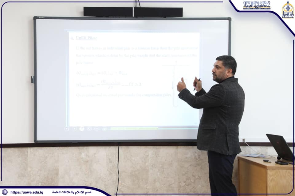 تصميم وتنفيذ الأساسات العميقة واهميتها بدورة تدريبية في جامعة وارث الانبياء(عليه السلام)