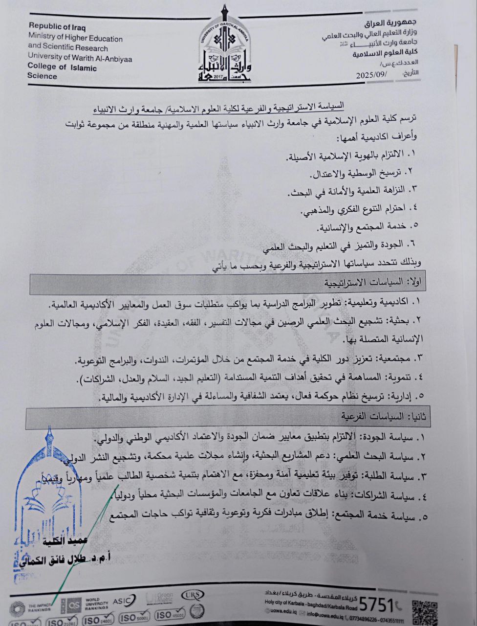 سياسة كلية العلوم الاسلامية