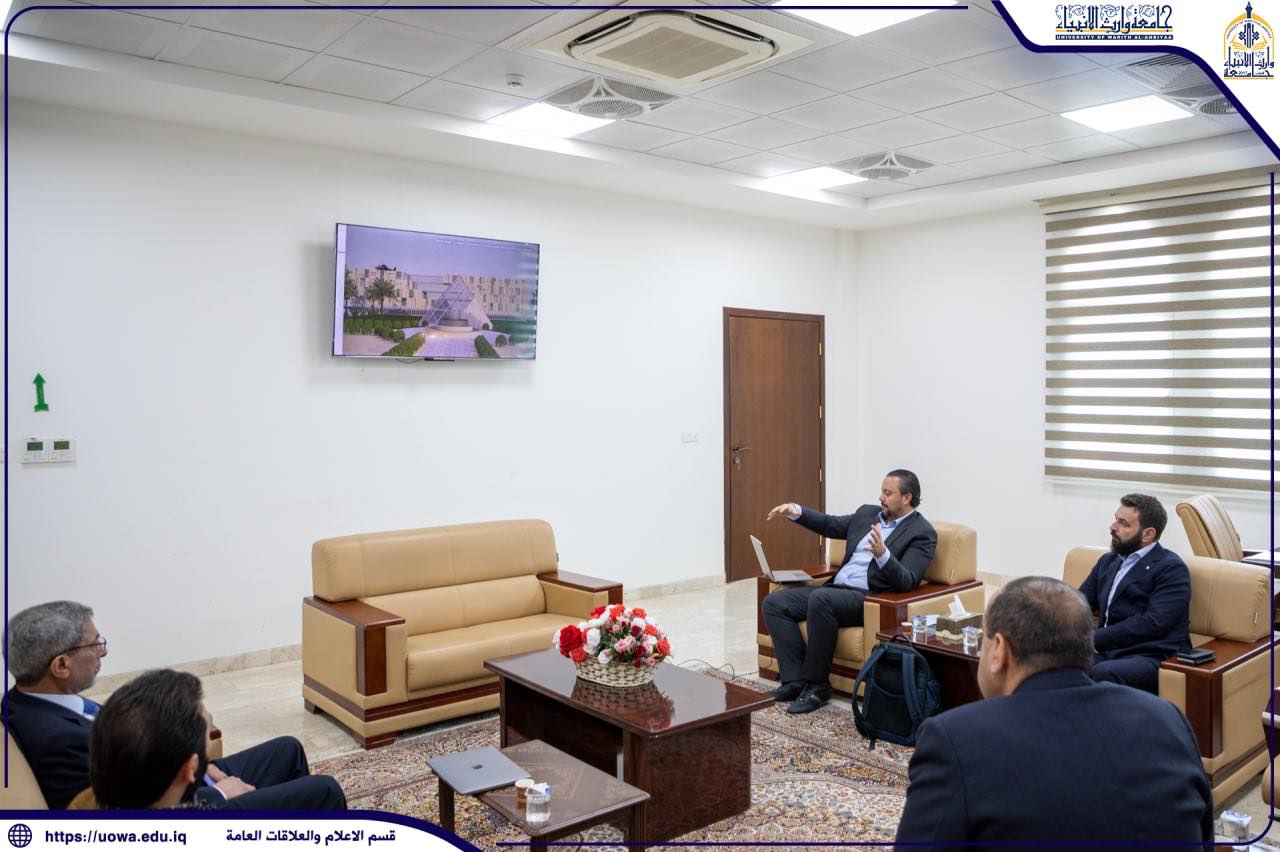 زار وفد يمثل احدى الشركات الاماراتية جامعة وارث الانبياء(عليه السلام) وكان في استقباله رئيس الجامعة الاستاذ الدكتور ابراهيم الحياوي الذي استمع الى عروض الشركة والمشاريع التي نفذتها داخل وخارج العراق.