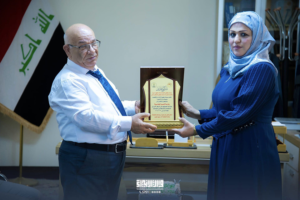 كرّم عميد كلية الإدارة والاقتصاد في جامعة وارث الأنبياء (عليه السلام)، الأستاذ الدكتور عواد الخالدي، رئاسة قسم المحاسبة بمناسبة تحقيقهم المرتبة الأولى على مستوى الجامعات الحكومية والأهلية في كربلاء المقدسة في الامتحان المشترك.