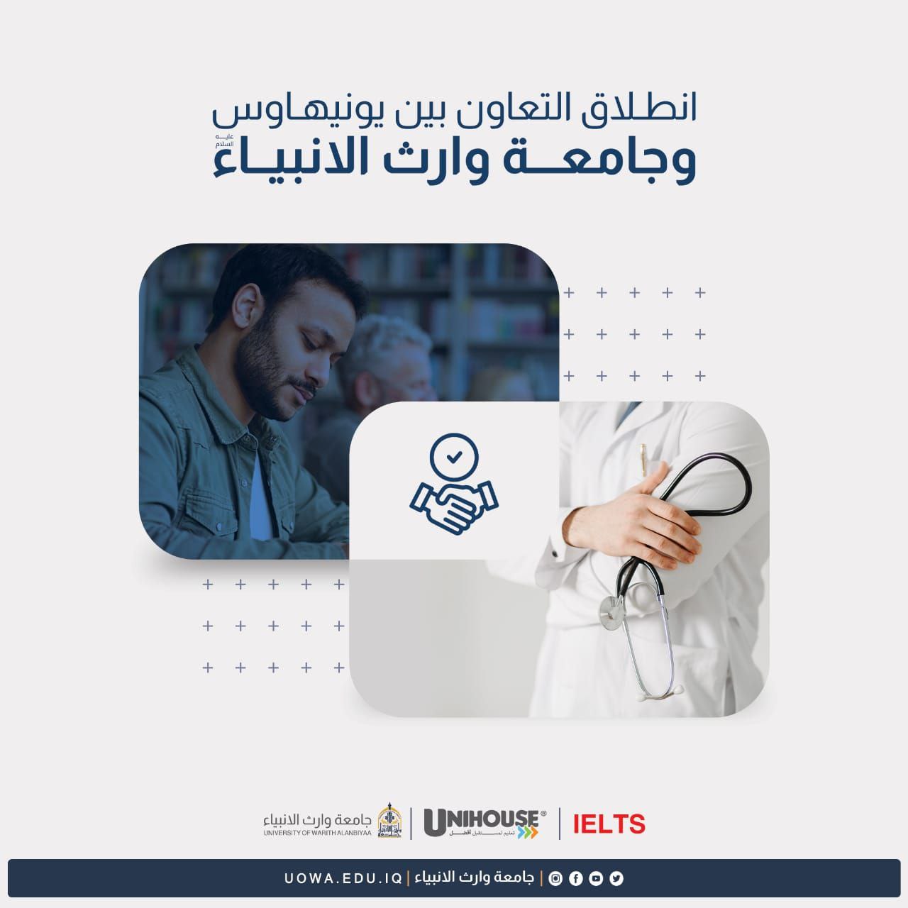 تطُلق جامعة وارث الأنبياء(عليه السلام)، وبالتعاون مع "مؤسسة UniHouse البريطانية" برامجها التدريبية للإستعداد لإختبار IELTS من قبل مدربين محترفين وعالميين معتمدين IELTS الدولية.