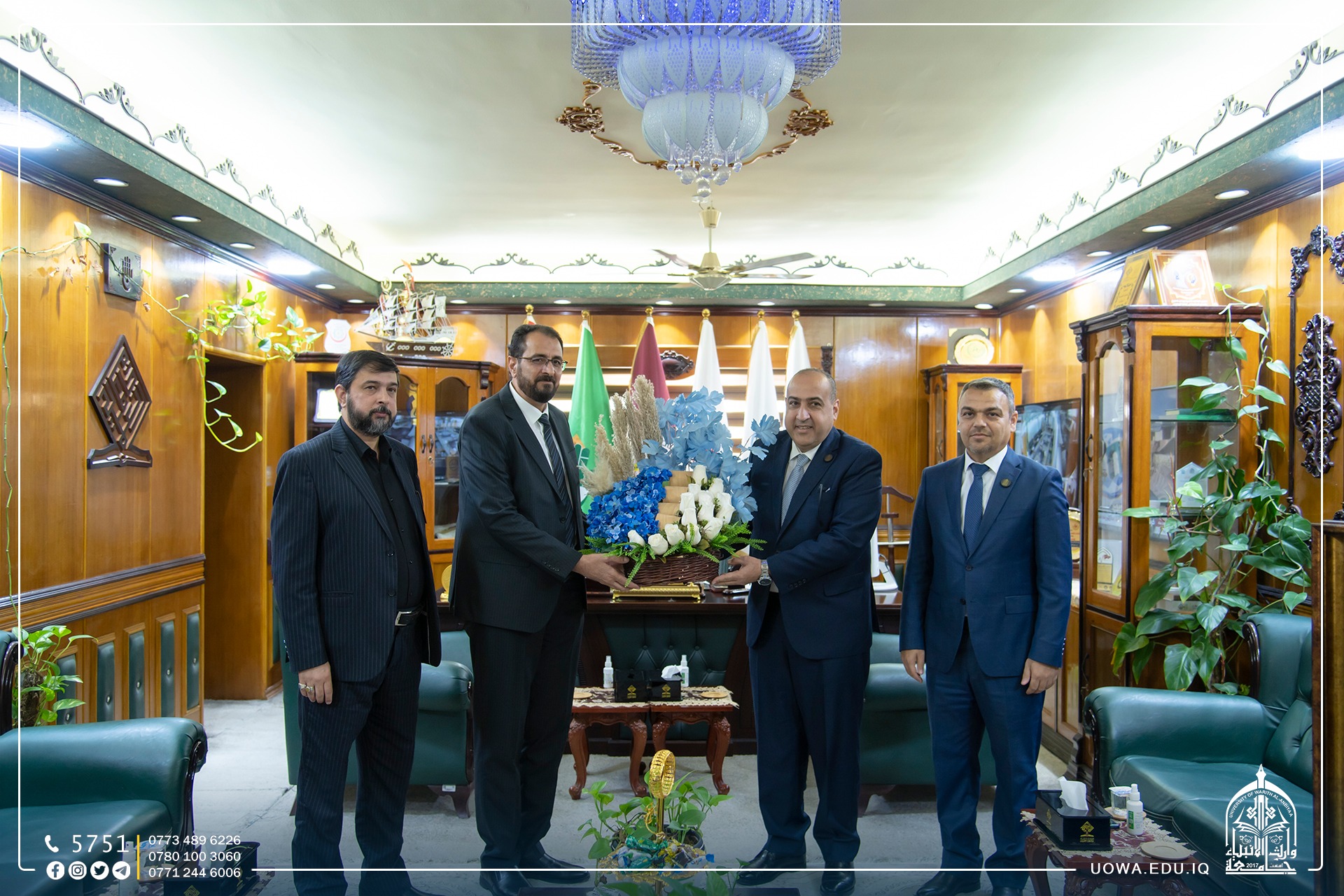 زار رئيس الجامعة الأستاذ الدكتور إبراهيم الحياوي والمساعد العلمي الأستاذ الدكتور واقد الموسوي جامعة العميد التابعة للعتبة العباسيّة المقدسة، لتقديم التهاني والتبريكات لرئيس جامعة العميد الأستاذ الدكتور جودت نوري الجشعمي، بمناسبة تسنّمه منصب رئاسة الجامعة، سائلين الله عزوجل الموفقيّة له لخدمة المسيرة العلميّة في بلدنا العزيز.