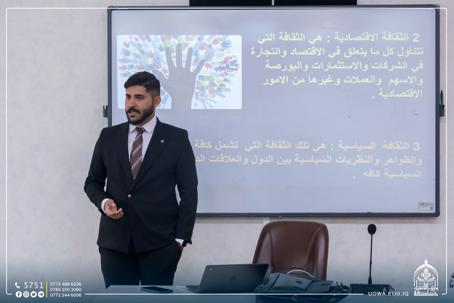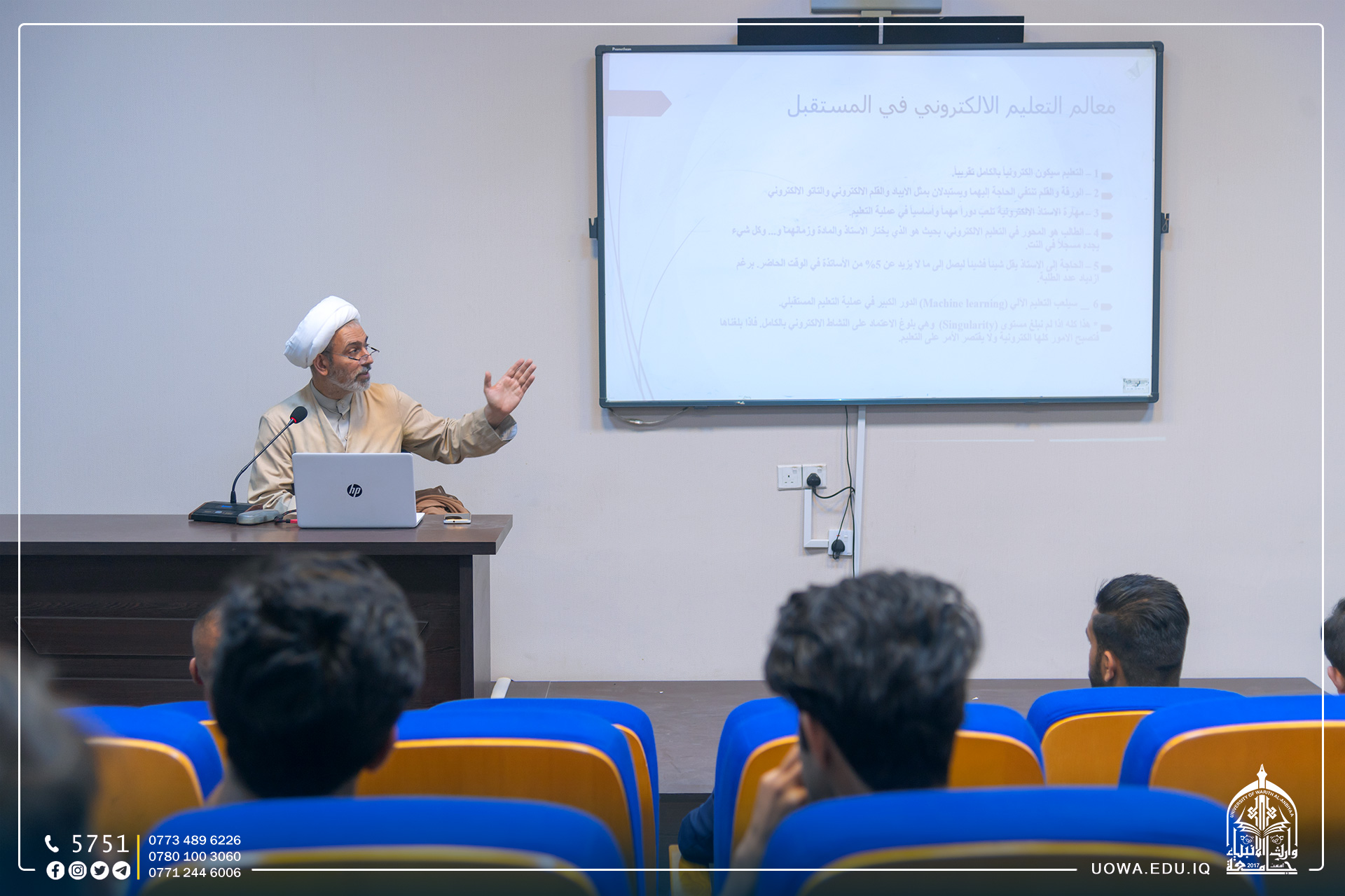 أقامت جامعة وارث (عليه السلام) / شعبة الارشاد النفسي والتوجيه التربوي مع قسم الشؤون العلمية، ندوة علمية توعوية بعنوان "المعلم الالكتروني في المستقبل"