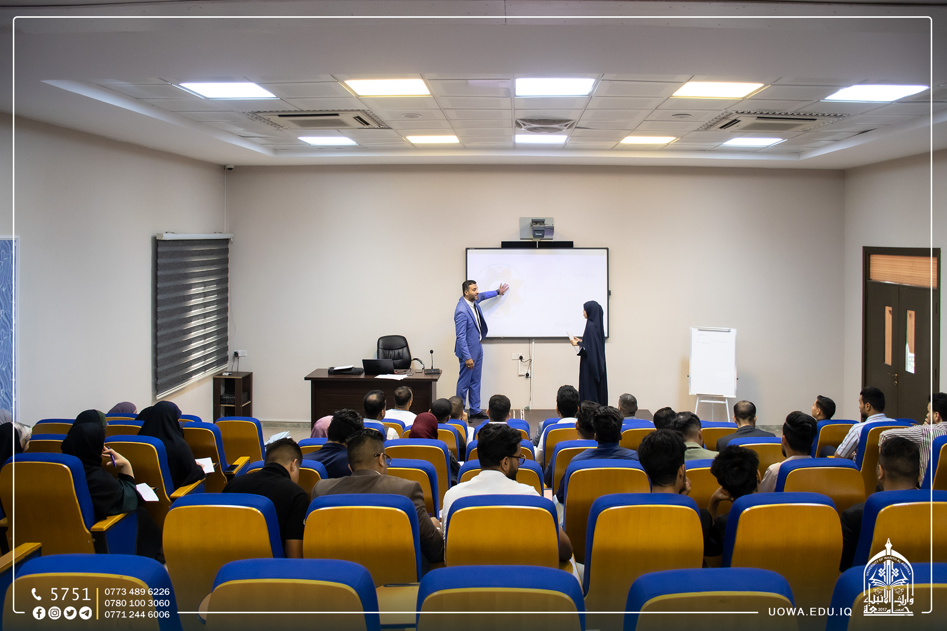 طلبة المرحلة الاولى في كلية الطب بجامعة وارث الانبياء (عليه السلام)، يقدمون سيمنرات علمية عن بعض الامراض بحضور رئاسة الجامعة وعمادة الكلية.