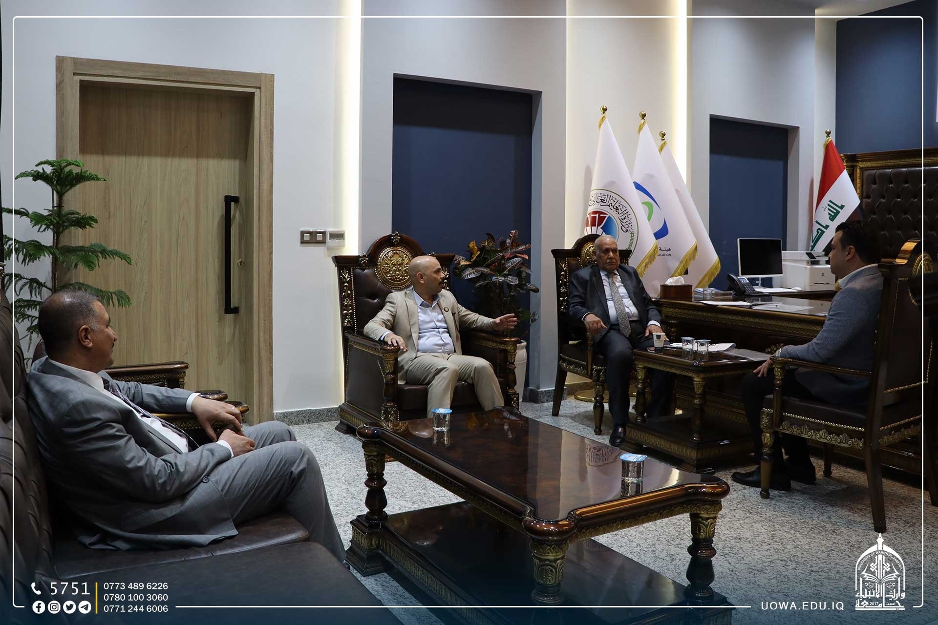 ضمن سعيها المتواصل للنهوض بواقع التعليم في بلدنا العزيز وخدمة طلبتنا الاعزاء، زار وفد من جامعة وارث الانبياء(عليه السلام) برئاسة السيد رئيس الجامعة الاستاذ الدكتور ابراهيم الحياوي الجامعة التكنولوجية في العاصمة بغداد لتوقيع اتفاقية علمية وثقافية بين الجامعتين.