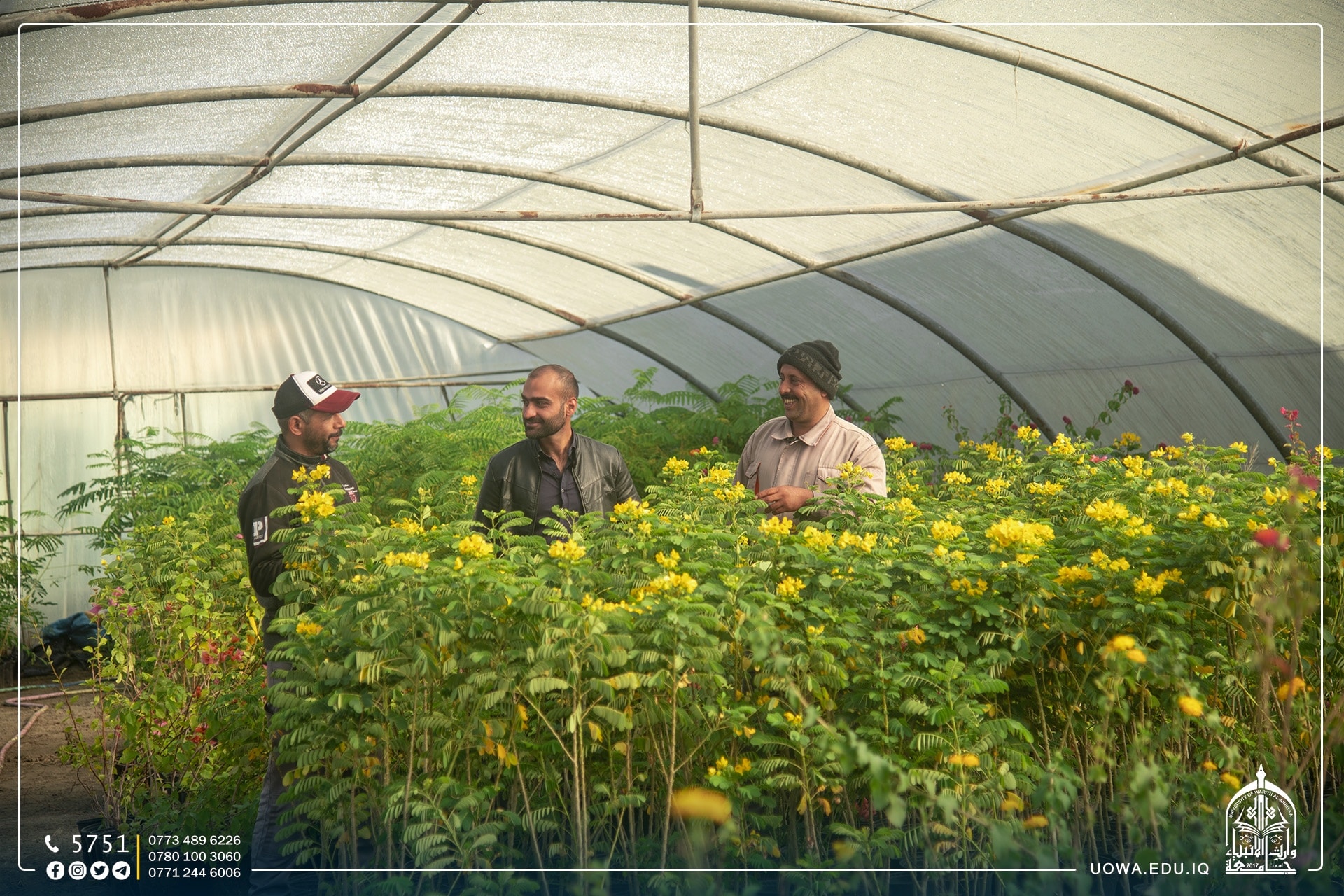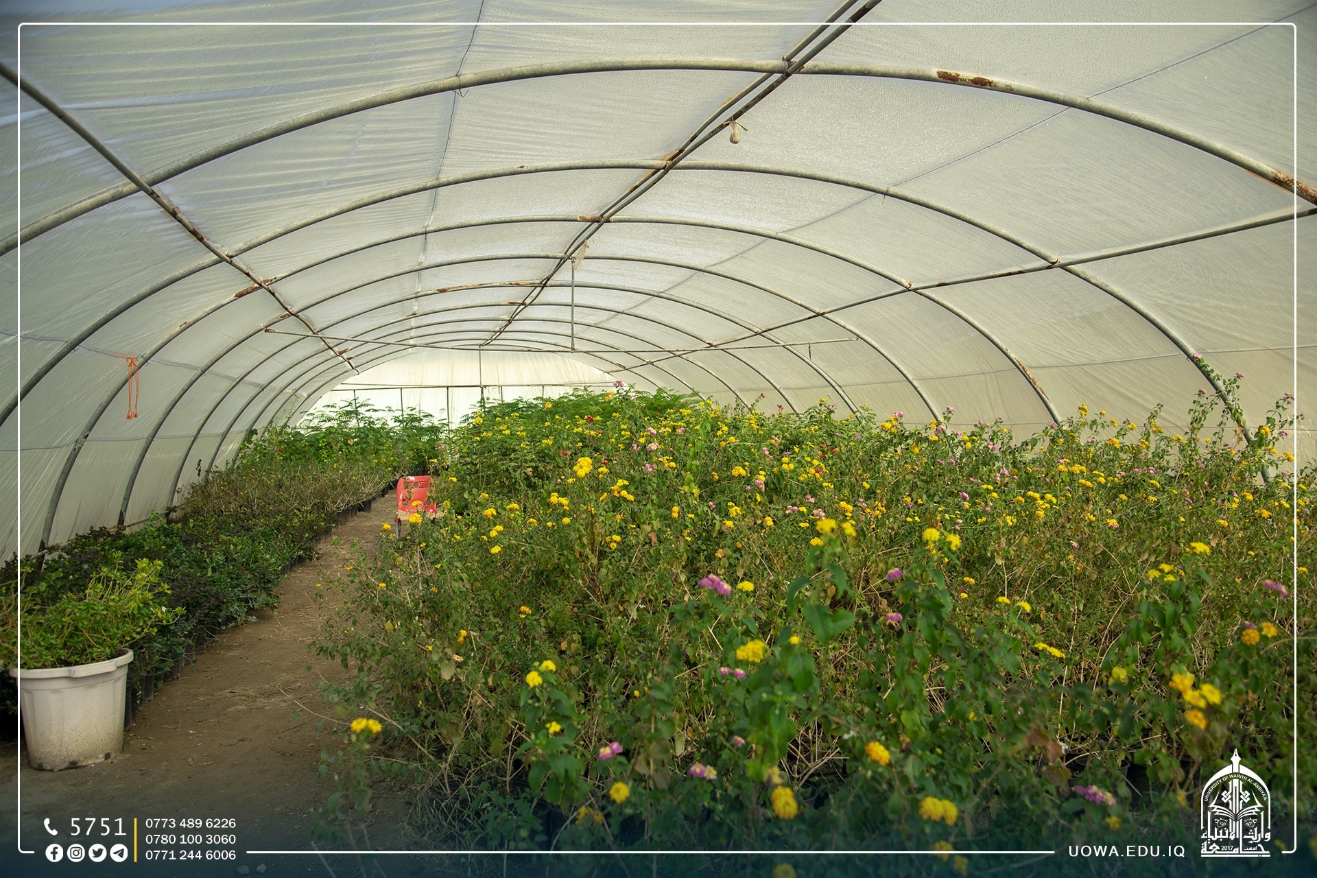جانب مصور من مشاتل جامعة وارث الانبياء(عليه السلام) التي اقامتها شعبة الزينة والتشجير في قسم ديوان الجامعة للاهتمام بالمساحات الخضراء وادامتها، إذ تتوفر فيها كافة المزروعات الموسمية والدائمية، وتعتمد على طرق ري حديثة لتقليل استهلاك المياه فضلاً عن اعتمادها المزروعات التي لاتحتاج الى كميات مياه كبيرة.