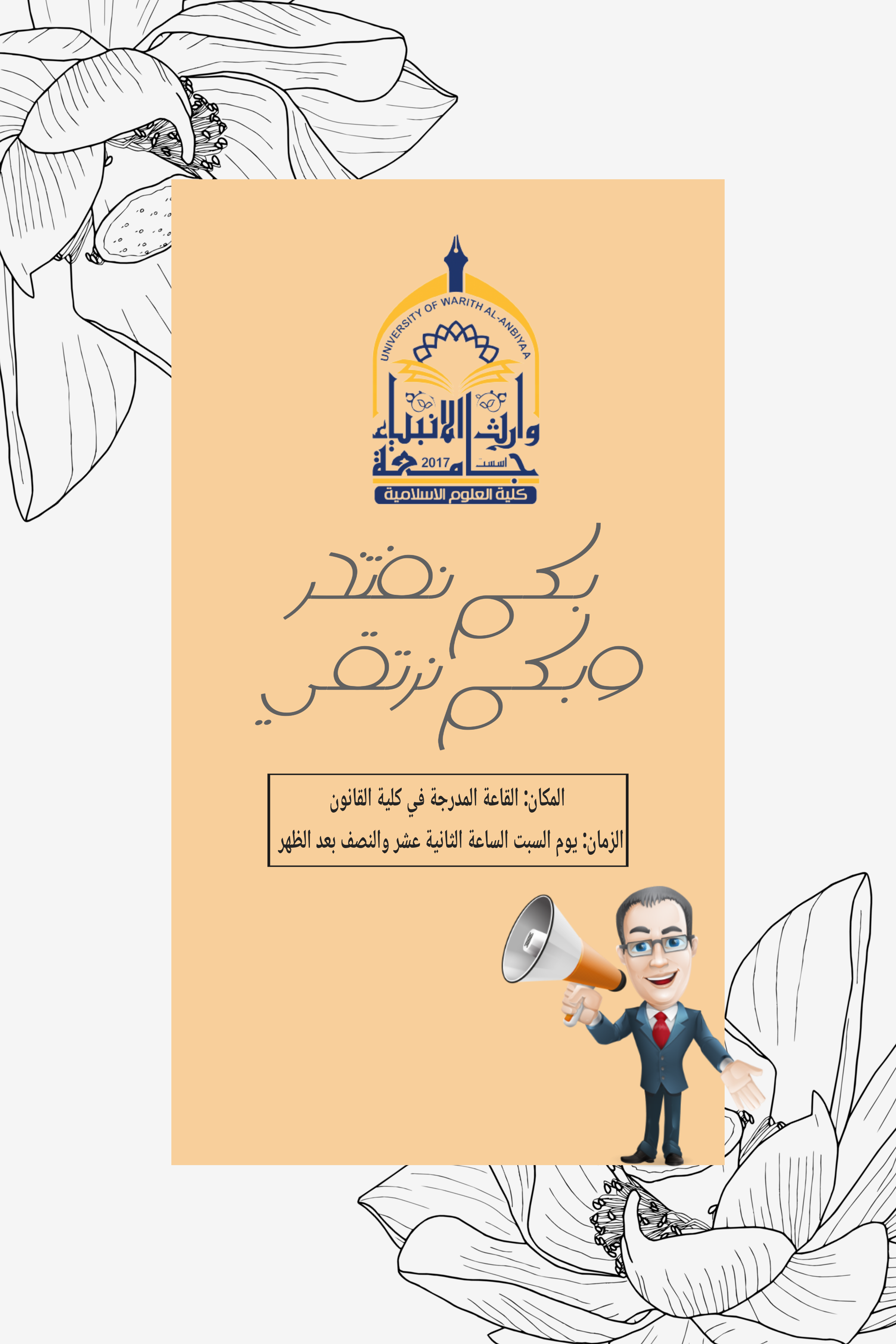 وذلك يوم الاربعاء الموافق 4-1-2023 في تمام العاشرة صباحاً على قاعة العلا في مبنى الجامعة.