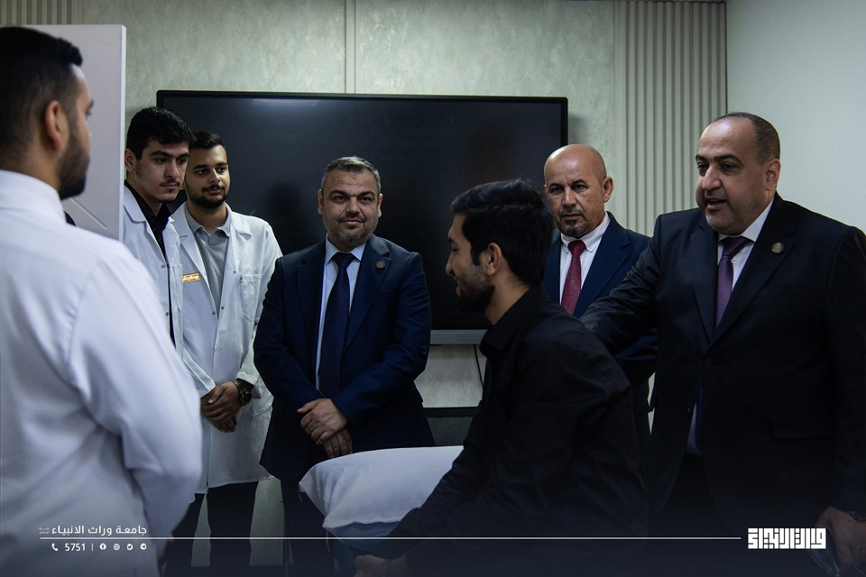 The President of the University of Warith Al-Anbiyaa, Professor Dr Ibrahim Saeed Al-Hayyawi, accompanied by the Assistant for Scientific Affairs, conducted a field tour of several university facilities to follow up on service provision and assess students’ needs, reflecting the university’s commitment to fostering an advanced learning environment that meets the requirements of modern academic practice.