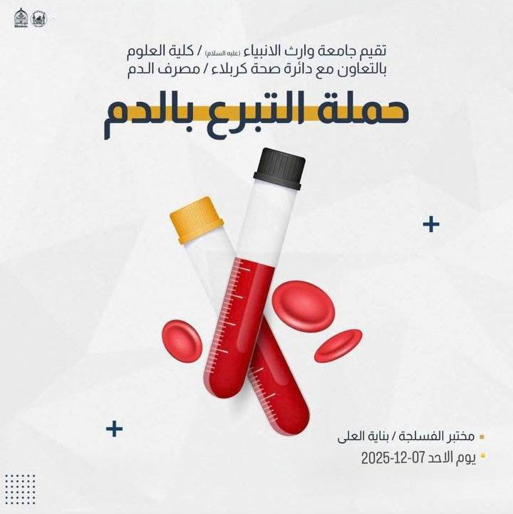 The College of Science at the University of Warith Al-Anbiyaa launched a blood donation initiative with the participation of academic staff and university employees. The initiative aimed to support the blood bank in Karbala and contribute to meeting the community’s medical needs.