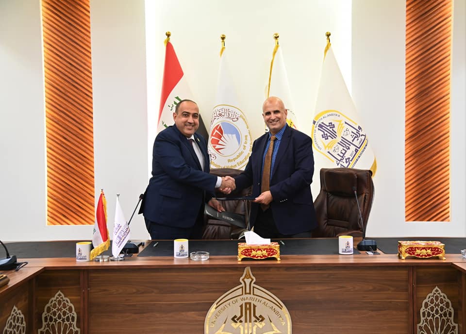 The University of Warith Al-Anbiyaa (peace be upon him) has signed a scientific agreement with Ras Al Khaimah Medical and Health Sciences University. The signing ceremony was attended by the University's President, Professor Dr. Ibrahim Al-Hayawi, and the President of Ras Al Khaimah University, Professor Dr. Ismaeel Matalka. The agreement encompasses various academic and scientific initiatives, including the exchange of scientific visits, collaborative research projects among the faculty of both universities, performance evaluation, scientific supervision, and the utilization of scientific expertise to train our students. It also involves student exchange programs, particularly for students in the College of Medicine and Nursing.
